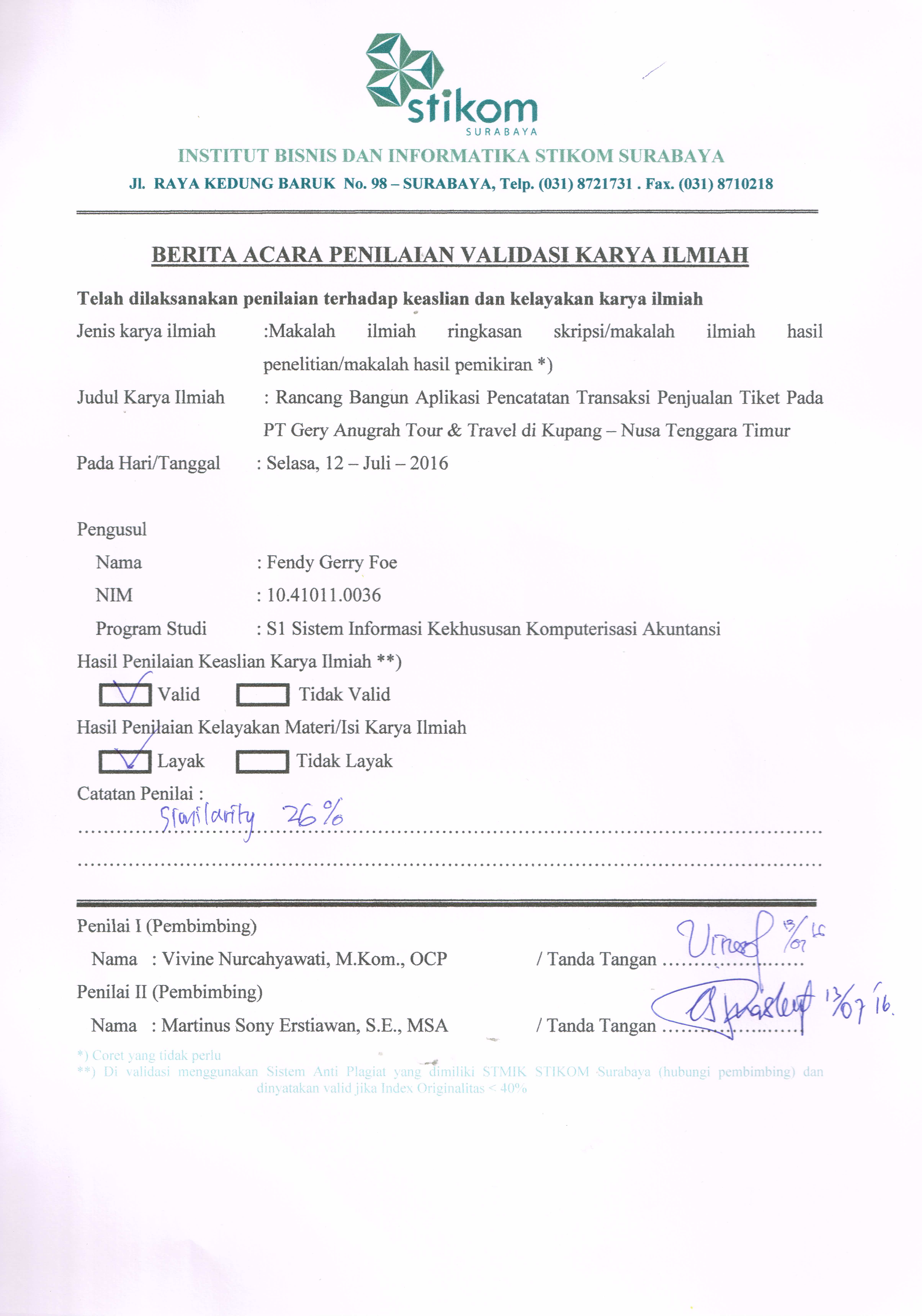Rancang Bangun Aplikasi Pencatatan Transaksi Penjualan Tiket Pada PT Gery Anugerah Tour And Travel Di Kupang - Nusa Tenggara Timur