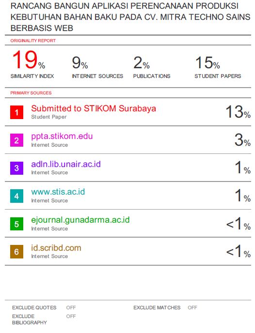 RANCANG BANGUN APLIKASI PERENCANAAN PRODUKSI KEBUTUHAN BAHAN BAKU PADA CV. MITRA TECHNO SAINS BERBASIS WEB