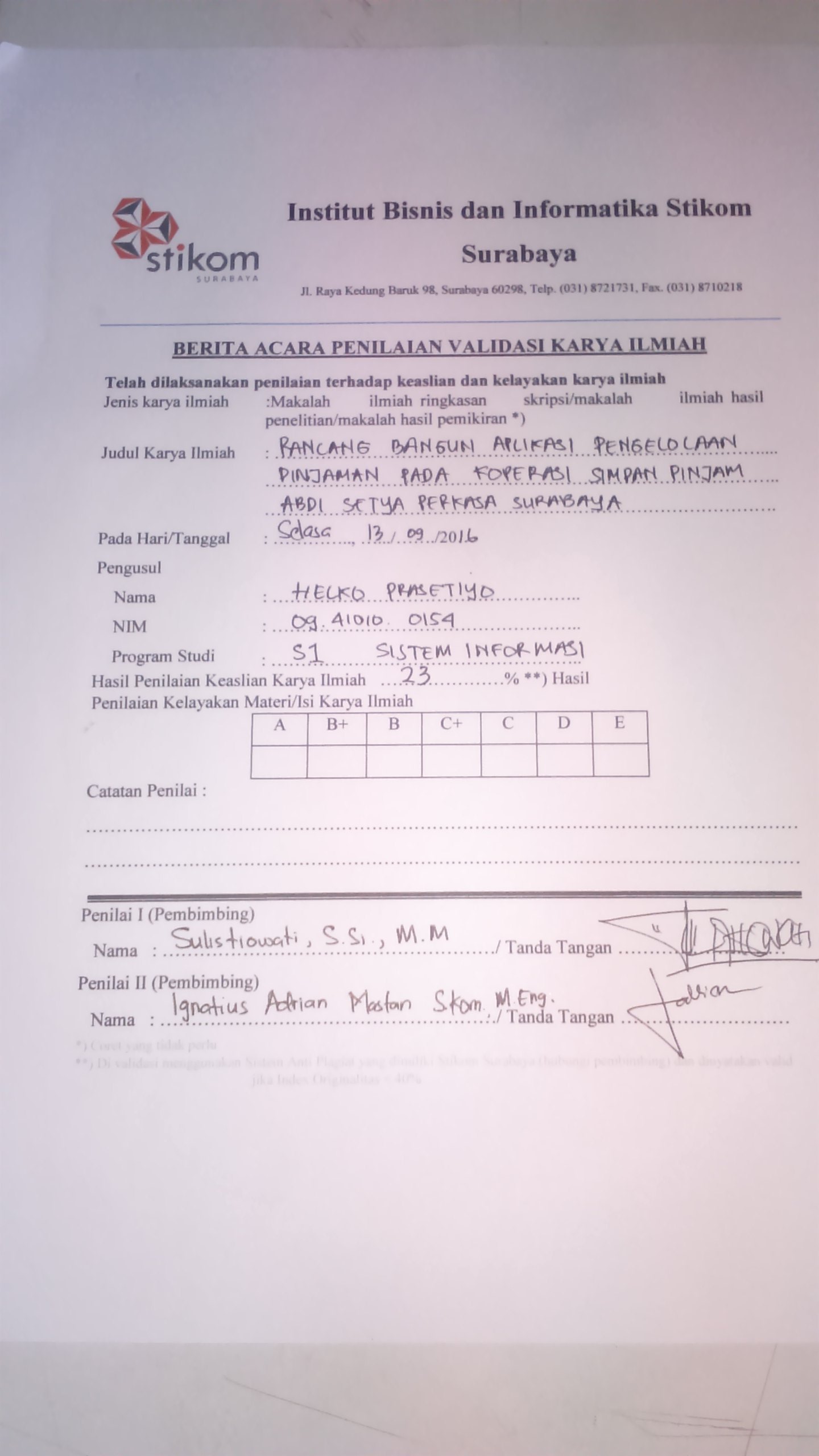 Rancang Bangun Aplikasi Pengelolaan Pinjaman Pada Koperasi Simpan Pinjam Abdi Setya Perkasa Surabaya