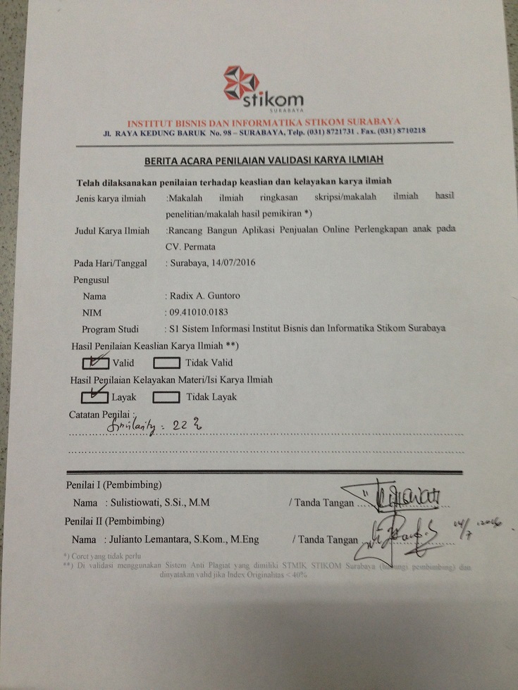 CV.Permata is a child store with the name of Nikita Baby Shop. CV. Permata located in Gotong Royong street No. 25E, Babat Lamongan. In 2015, sales of CV. Permata instability.CV. Permata must be expanding their sales to get more profit. Based on interviews, CV. Permata do not want to using social media such as facebook and instagram to selling their products. The shortage of facebook and instagram, customers got difficult to booking the products. Of the CV. Permata problem, CV. Permata need online shop application that have add to cart features, product catalogue features, best seller report, most buyer report, product stock report, etc. With this application is expected to provide information data member, best seller report, most buyer report, product stock report with the aim of providing information to help CV.Permata sales.Keywords: Online Shop, Website, Baby ShopDownloads
