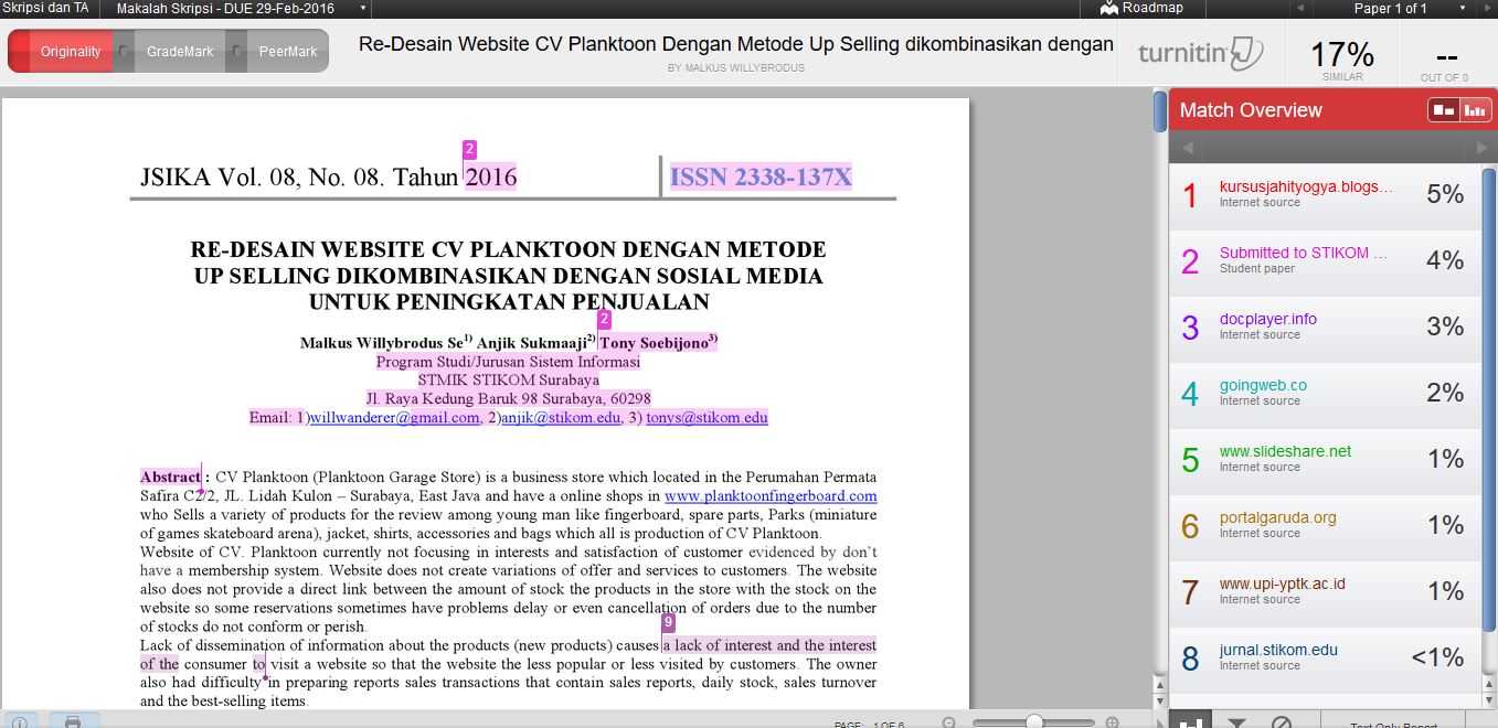 ABSTRAK : CV Planktoon (Planktoon Garage Store) is a business store which located in the Perumahan Permata Safira C2/2, JL. Lidah Kulon – Surabaya, East Java and have a online shops in www.planktoonfingerboard.com who Sells a variety of products for the review among young man like fingerboard, spare parts, Parks (miniature of games skateboard arena), jacket, shirts, accessories and bags which all is production of CV Planktoon.Website of CV. Planktoon currently not focusing in interests and satisfaction of customer evidenced by don’t have a membership system. Website does not create variations of offer and services to customers. The website also does not provide a direct link between the amount of stock the products in the store with the stock on the website so some reservations sometimes have problems delay or even cancellation of orders due to the number of stocks do not conform or perish.Lack of dissemination of information about the products (new products ) causes a lack of interest and the interest of the consumer to visit a website so that the website the less popular or less visited by customers. The owner also had difficulty in preparing reports sales transactions that contain sales reports, daily stock, sales turnover and the best-selling items.In addressing these problems, made a re-design of website system which capable of providing a recommendation as to similar products through strategies of Up Selling, have a member registration features, dissemination of product information via sosial media, have a product search feature, ordering and payment until the confirmation of data delivery to the customer, and make a reports sales transactions that contain sales reports, daily stock, sales turnover and the best-selling items to owner.From the test results, the system is able to generate output rekomedasi up selling products, dissemination of product information via sosial media, member registration feature, and produce reports like sales reports, daily stock, sales turnover and the best-selling items.Kata Kunci: Re-desain, Website, Up Selling, Sosial Media.Downloads