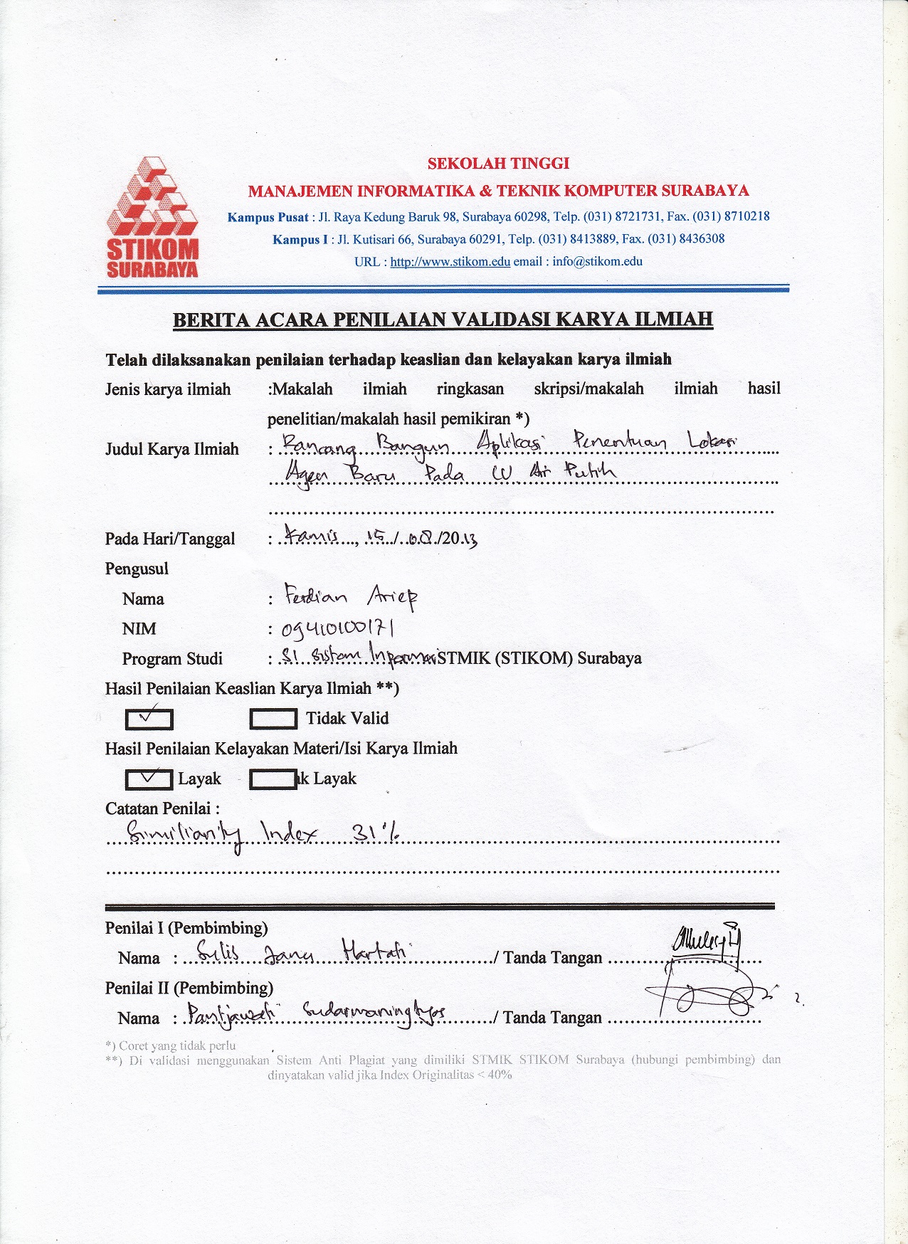 Abstract: The problem in this research is how to determine a good/fit new agent. To determining the fit area using Gravity Location Model ( GLM ) model to get the point of the fit area and use Analytical Hierarchy Process ( AHP ) model to get ranked best candidate agent . This should consider several variables such as distance, volume of demand , cost and distance of the two areas is less than 5 km. After obtained a suitable area to be opened next agent then takes variables such as the price and capacity of each customer's warehouse in a radius of 500 meters to be modeled. If GLM result is no customers on radius fit, then the application will take three customers that have the shortest distance to the point . After getting the prospective agent by area fit, the AHP calculation is performed which results will be sorted decline so we would get the best ranking candidate agent . The purpose of this research is to build an application that is able to model the data to the GLM model and AHP to generate new good/fit candidate agents. The results showed that using pieces of GLM model and AHP is able to provide the best alternative agent in accordance with the company's business objectives . The results of this study show that : the first condition of the application was able to retrieve all customer data within fit radius when fit point falls in the region with the coordinates contained -3.585538052, 114.7174578 . Second condition is when the fit radius have no customer, then the application will take 3 the closest customers on coordinate radius -3.60041056, 114.7055044. AHP calculation process will be done when the results of the GLM calculations have been done . Prospective new agent based GLM condition 1 , obtained id 84023 customers with the best value 31 % , id 84 026 customers with the best value 21%, customer id 84025 with the best value 20%. While the new candidate agents based GLM condition 2 , obtained id 84 031 customers with the best value 35 % , id 84046 with the best value 33% and customer id 84034 with the best value 32%. Keywords: Agent, Distribution, Gravity Location Model, Analytical Hierarchy Process.Downloads