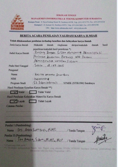 An Administration Document is necessary for sales vehicle and must be completed by customers. This Administrative document collection is done at the one of Astra isuzu branch because this process involving cooperation between customers, sales units, Sales leasing, An Administration document for vehicle sales also serves as one of the absolute requirement on leasing demand credit application chosen by the applicant vehicle loans and determine the vehicle's credit application is accepted or not. There is a problem that has occurred during this time, where there are no regulation about deadline for collection of Administrative document that make delays in the all process of ordering vehicles. With the implementation of the Administrative Workflow Systems in this Monitoring system can help the customer to accelerate the collection of administration documents of sales vechicle and help the sales unit to immediately process the customer booking request and help sales leasing to immediately process subcribers vehicle if the loan application is accepted or not.Downloads