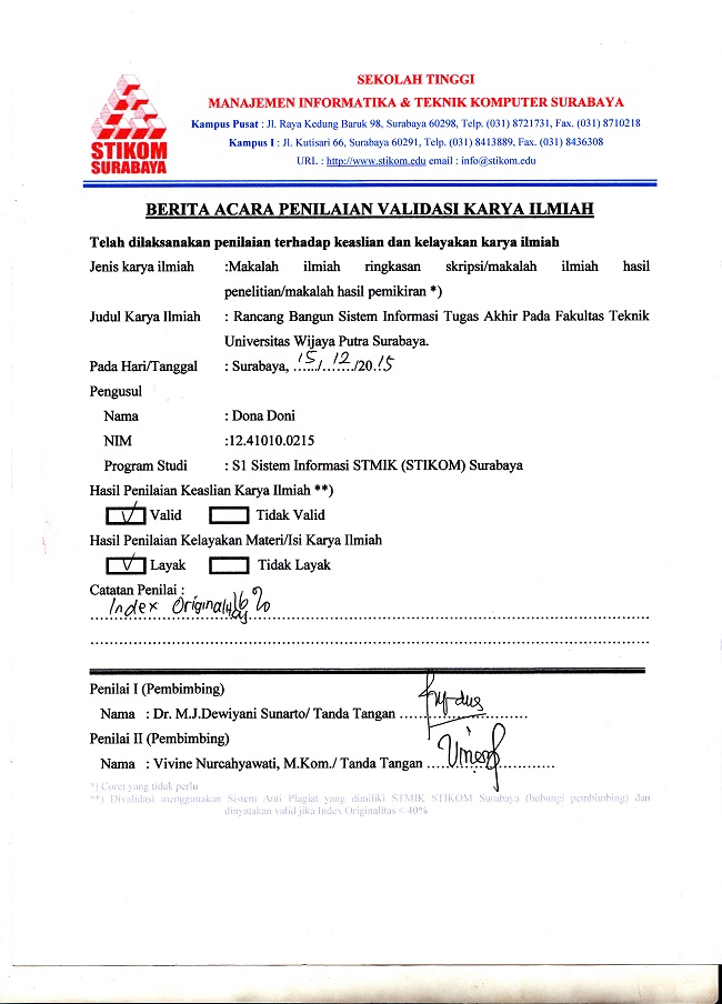 Rancang Bangun Sistem Informasi Tugas Akhir Pada Fakultas Teknik Universitas Wijaya Putra Surabaya