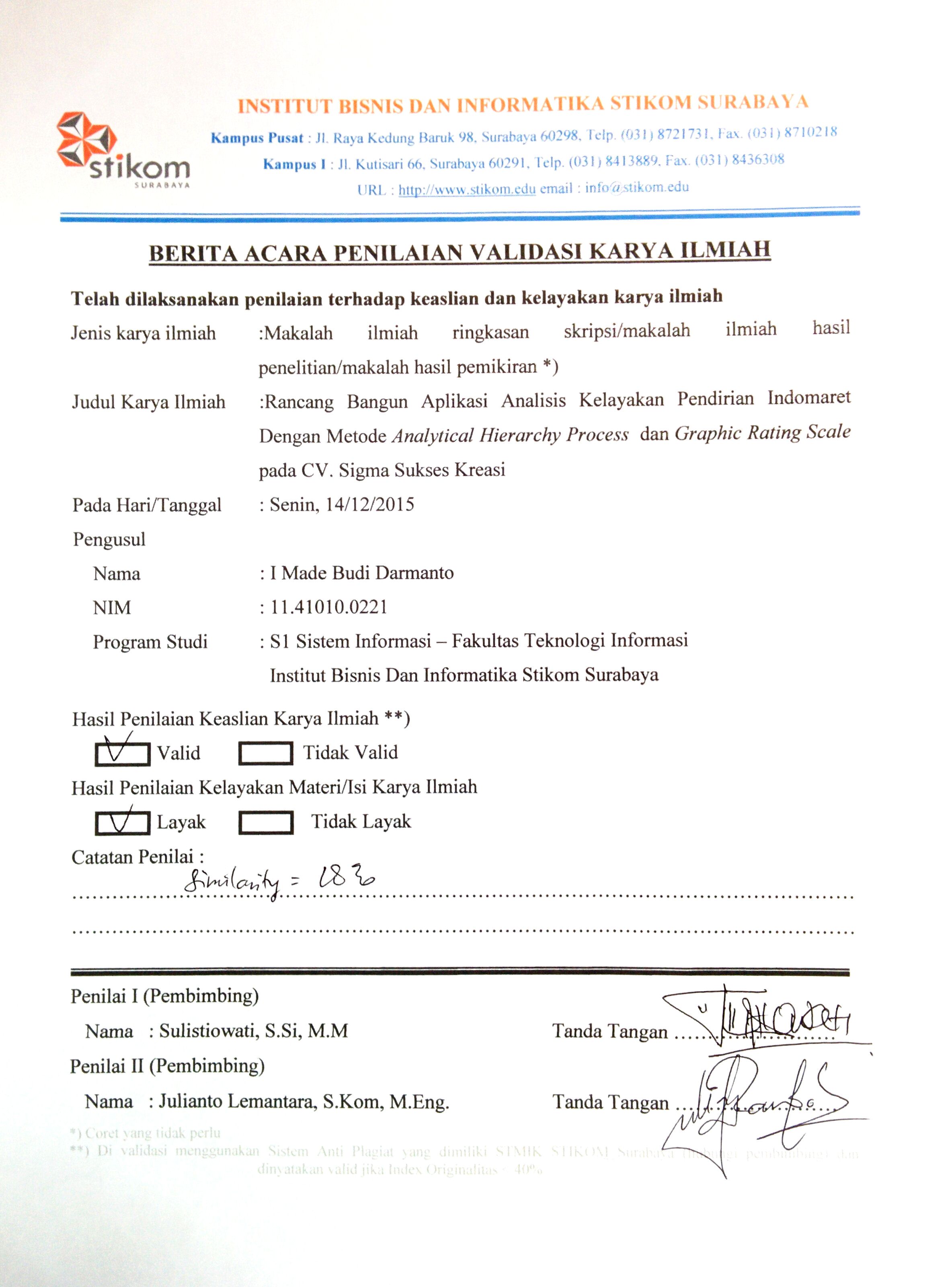 Rancang Bangun Aplikasi Analisis Kelayakan Pendirian Indomaret Dengan Metode Analytical Hierarcy Process Dan Graphic Rating Scale Pada CV. Sigma Sukses Kreasi