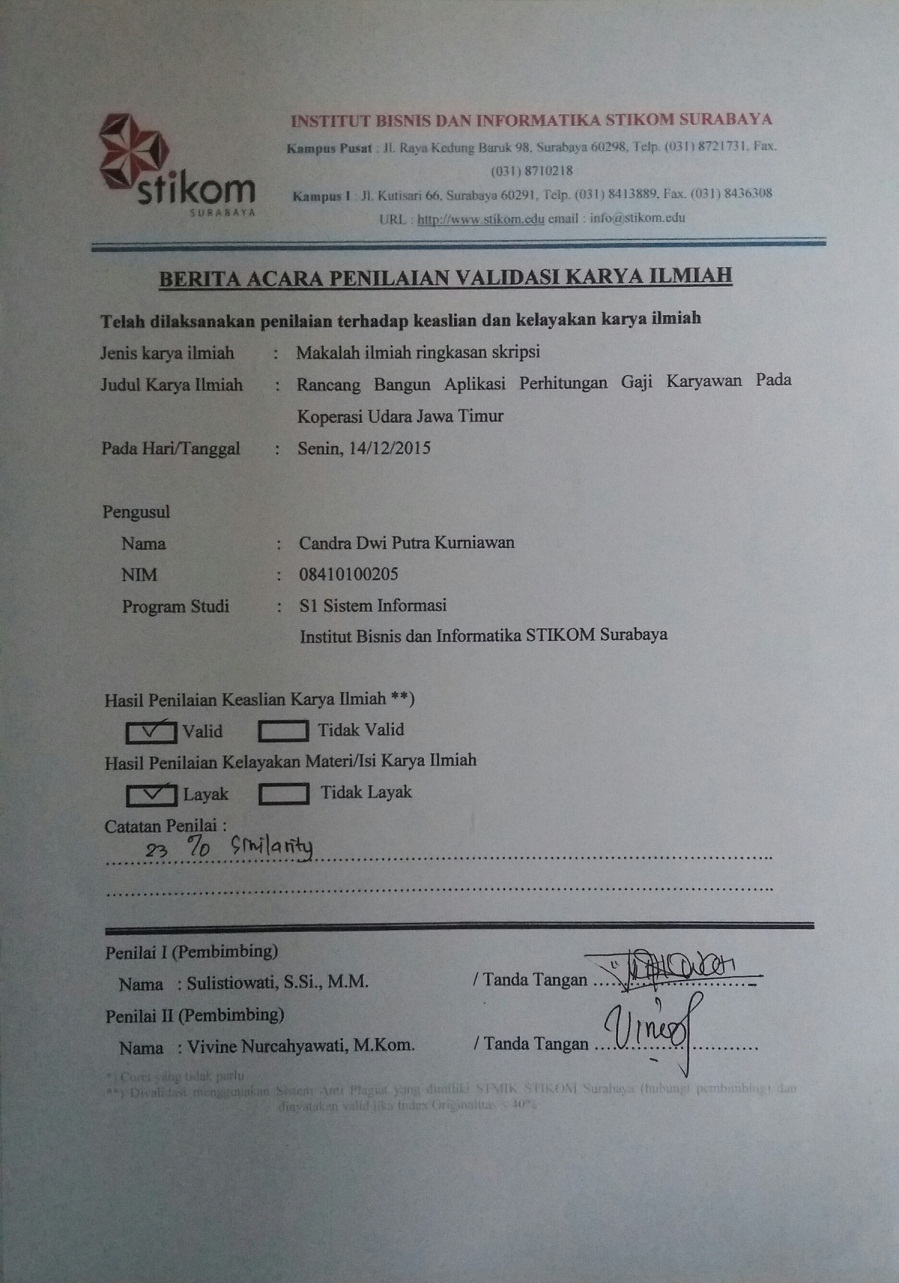 Rancang Bangun Aplikasi Perhitungan Gaji Karyawan pada Koperasi Udara Jawa Timur