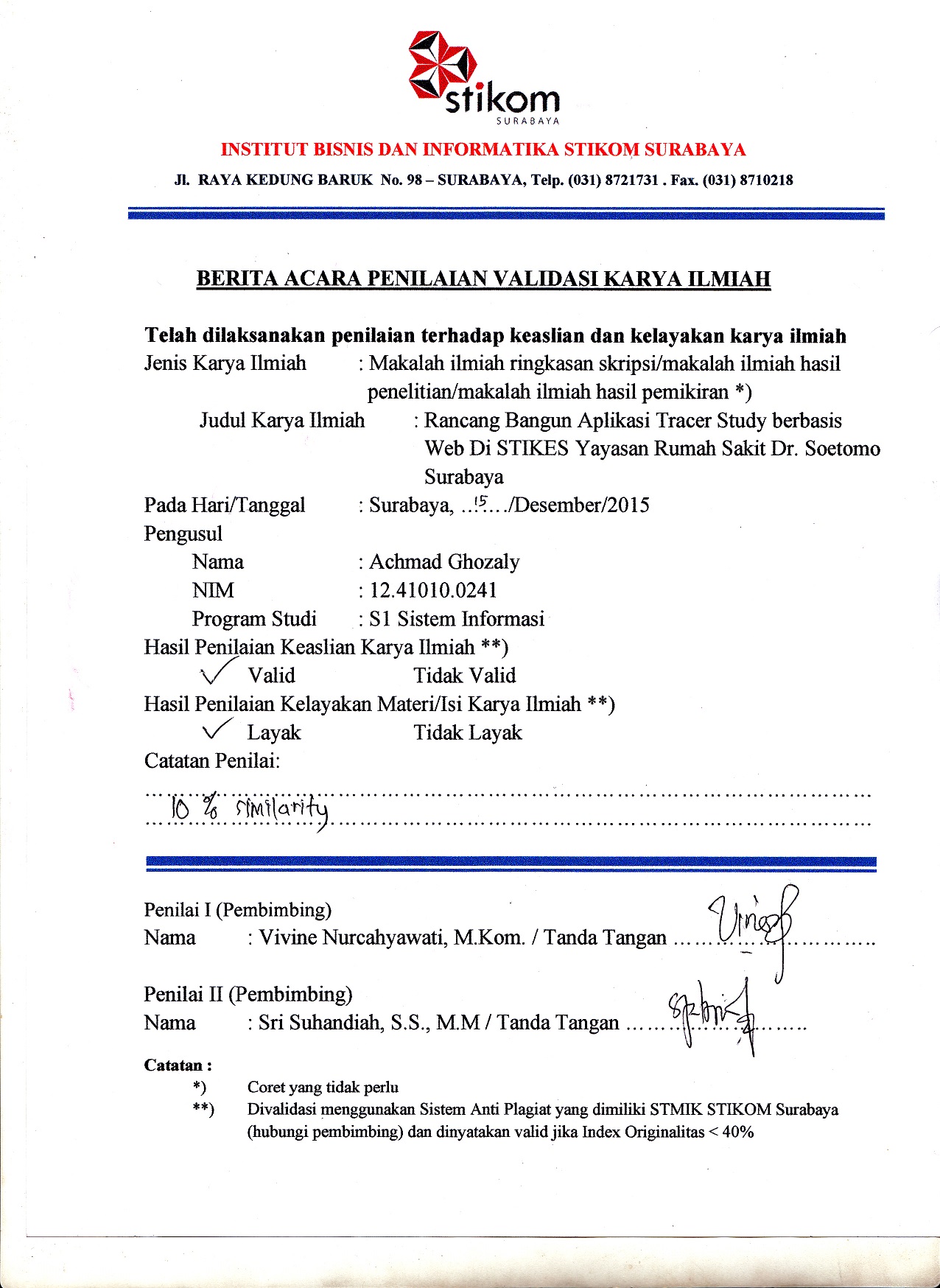 Rancang Bangun Aplikasi Tracer Study Berbasis Web Pada Stikes Yayasan Rumah Sakit Dr. Soetomo Surabaya