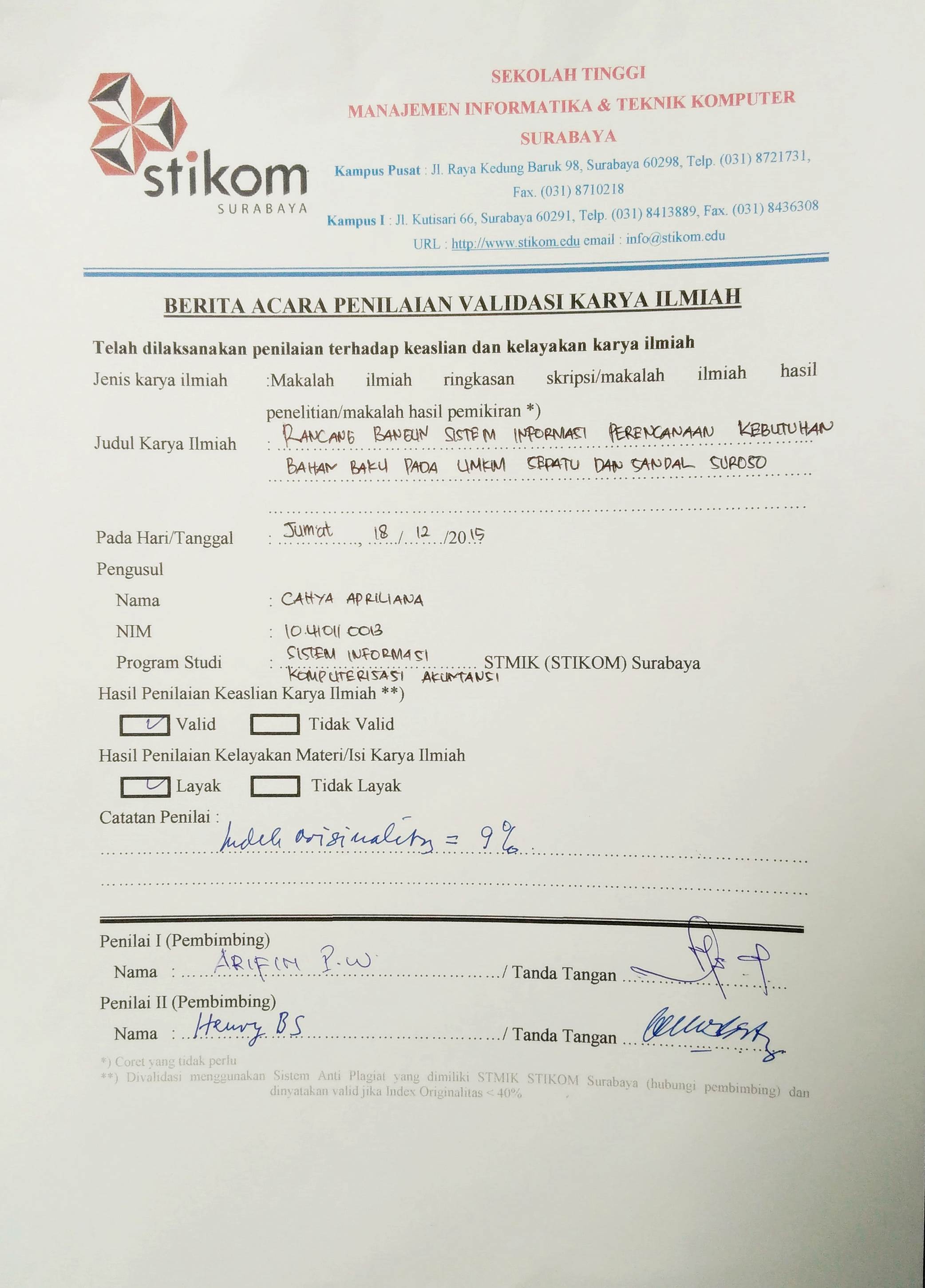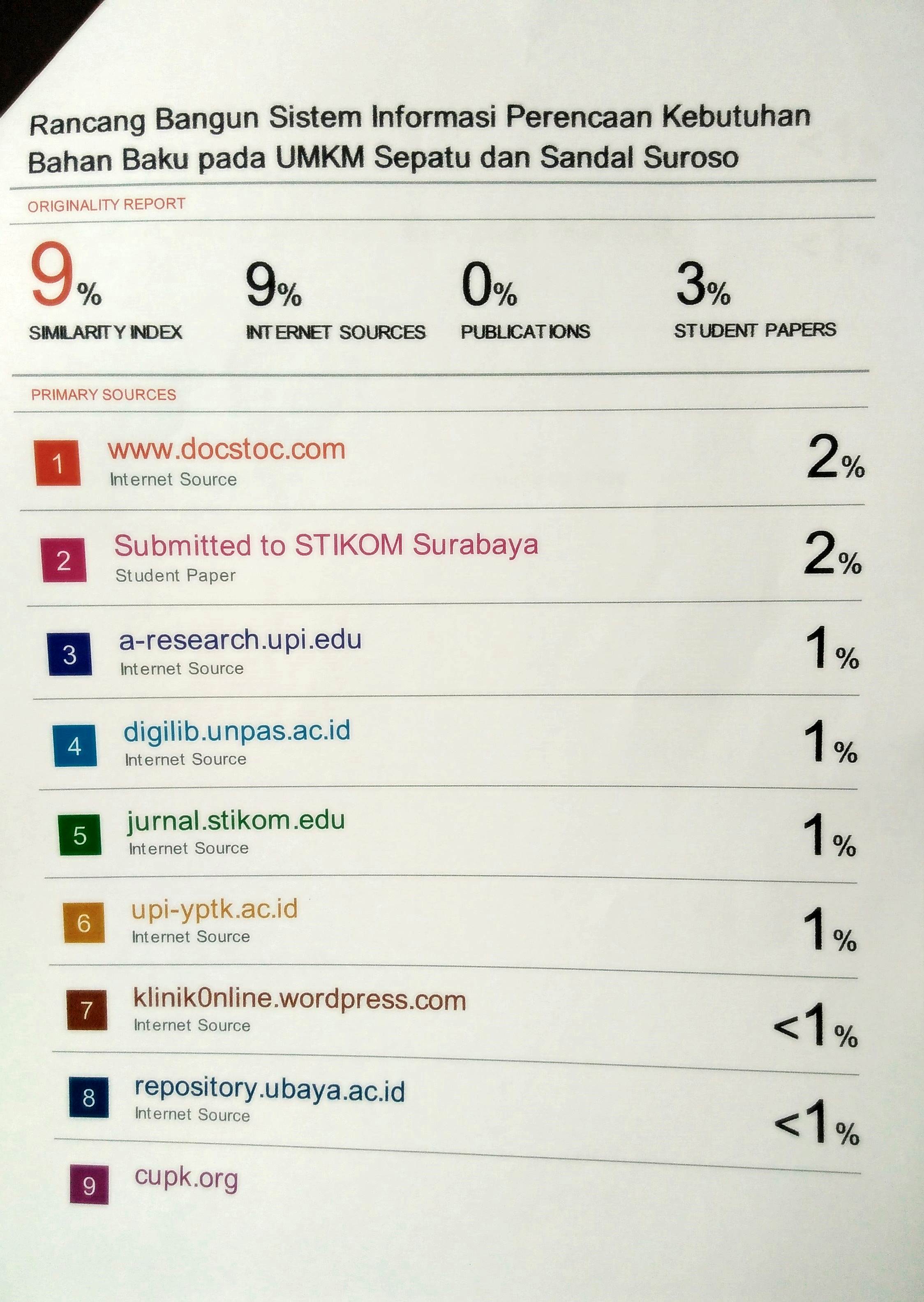 Micro, small and medium enterprises (SMEs) Shoes and slippers Suroso are owned by individuals and companies engaged in manufacturing producing shoes and sandals in accordance with customer orders ( job order ). During this time, companies often have the delay time of fulfillment of customer orders. This is because in determining the time of the fulfillment of the order is still based on an estimate of the operational part, there’s no checking the detail about the structure of the product and checking raw materials is not done on a regular basis so it can also lead to a deficiency or excess of raw materials.