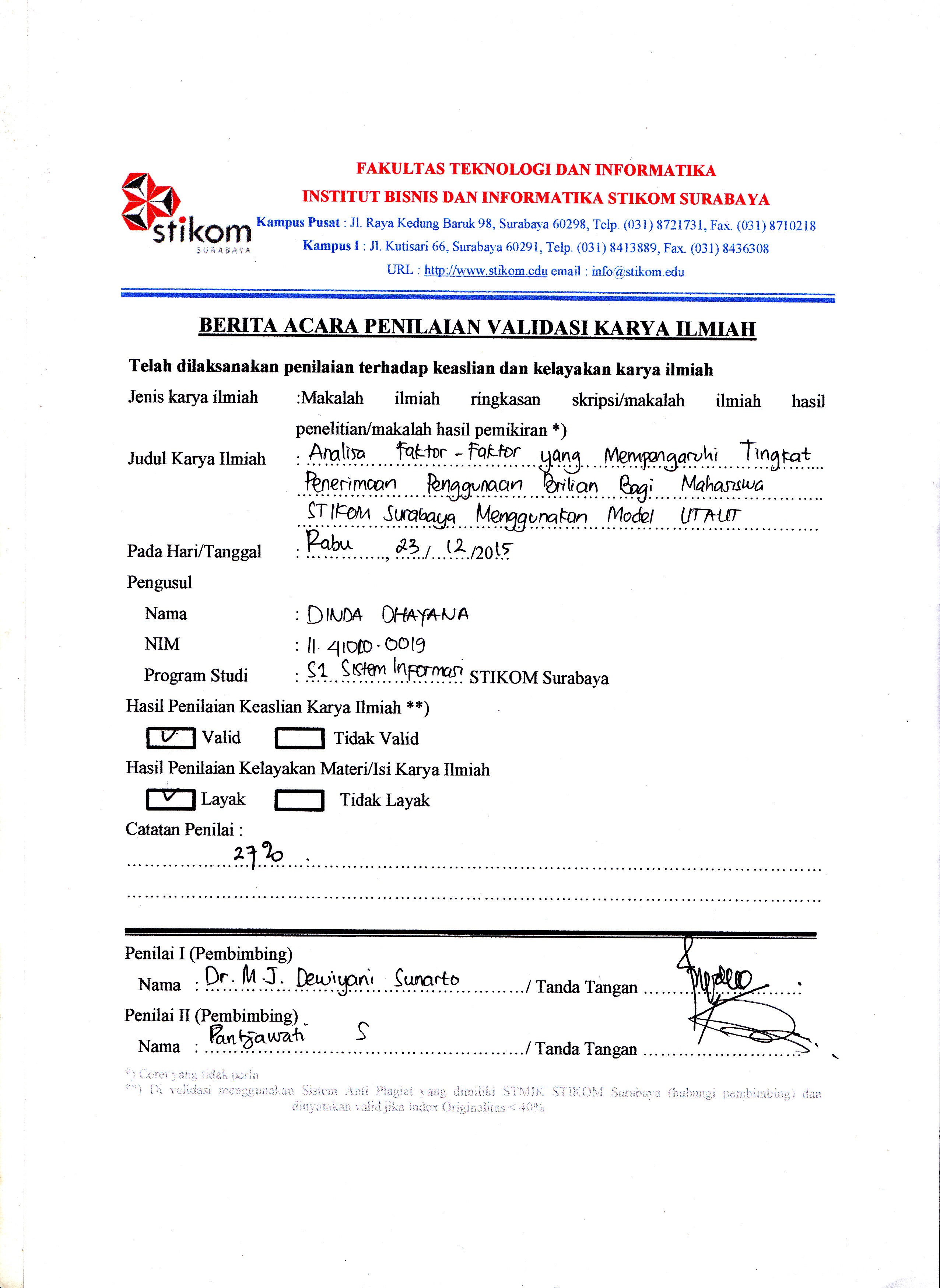 Brilliant Acceptance Factor Analysis for Students Stikom Surabaya Methods UTAUT