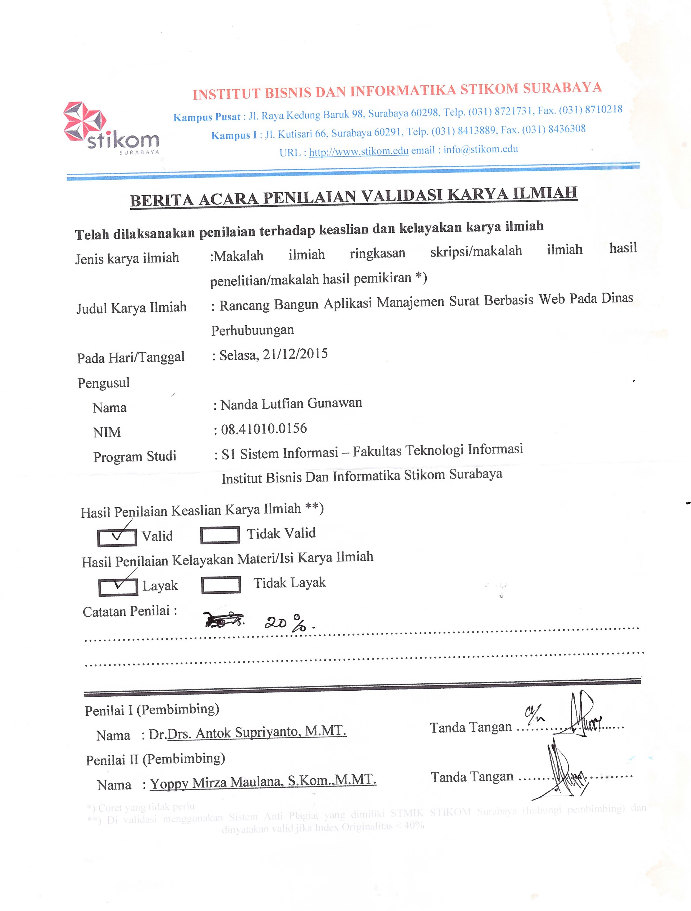 RANCANG BANGUN APLIKASI MANAJEMEN SURAT BERBASIS WEB PADA DINAS PERHUBUNGAN KOTA SURABAYA