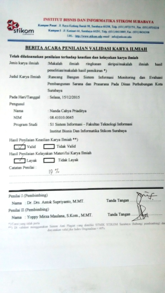 Rancang Bangun Sistem Informasi Monitoring Dan Evaluasi Pembangunan Sarana Dan Prasarana Pada Dinas Perhubungan Kota Surabaya