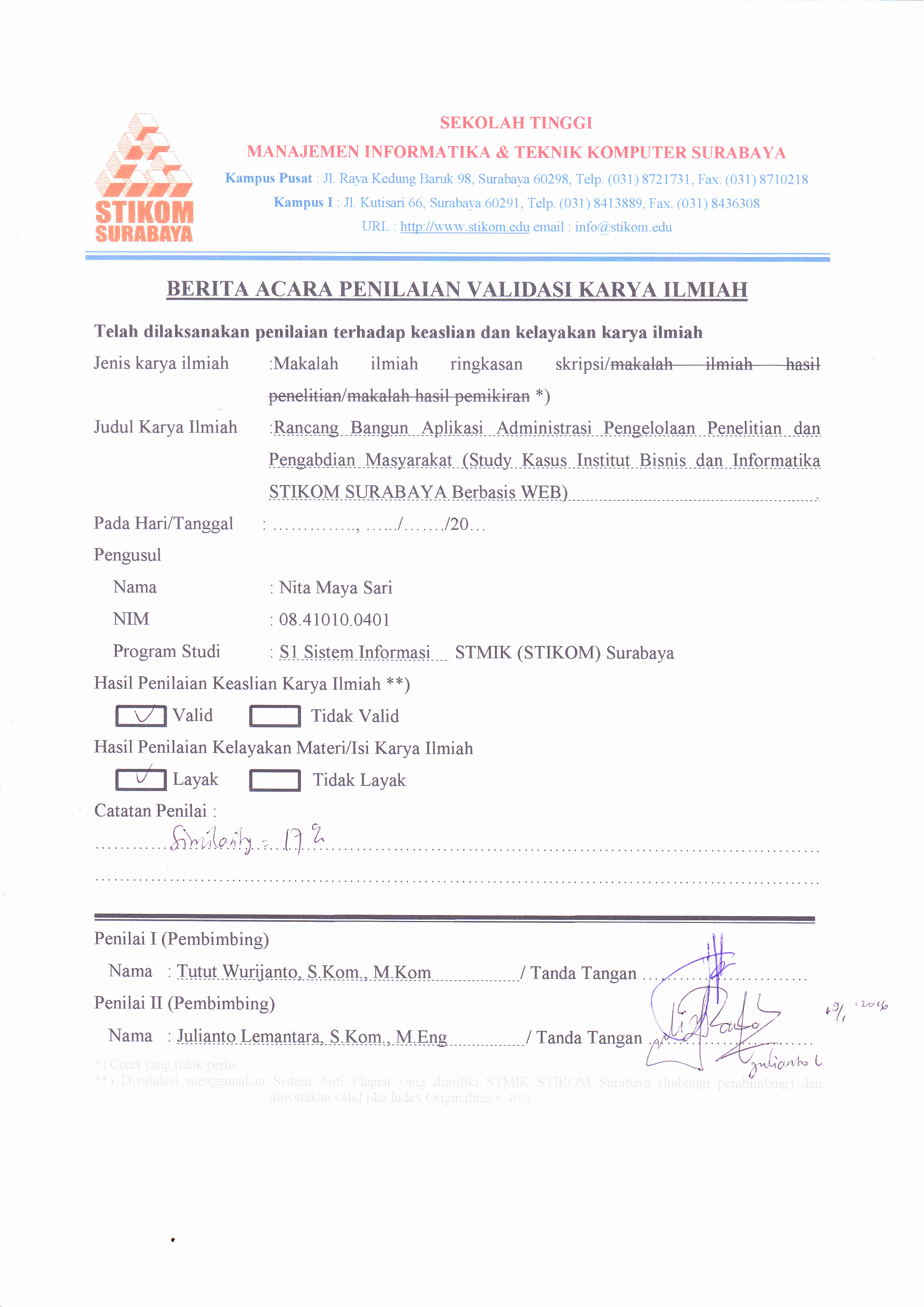 RANCANG BANGUN APLIKASI ADMINISTRASI PENGELOLAAN PENELITIAN DAN PENGABDIAN MASYARAKAT (STUDI KASUS INSTITUT BISNIS DAN INFORMATIKA STIKOM SURABAYA)