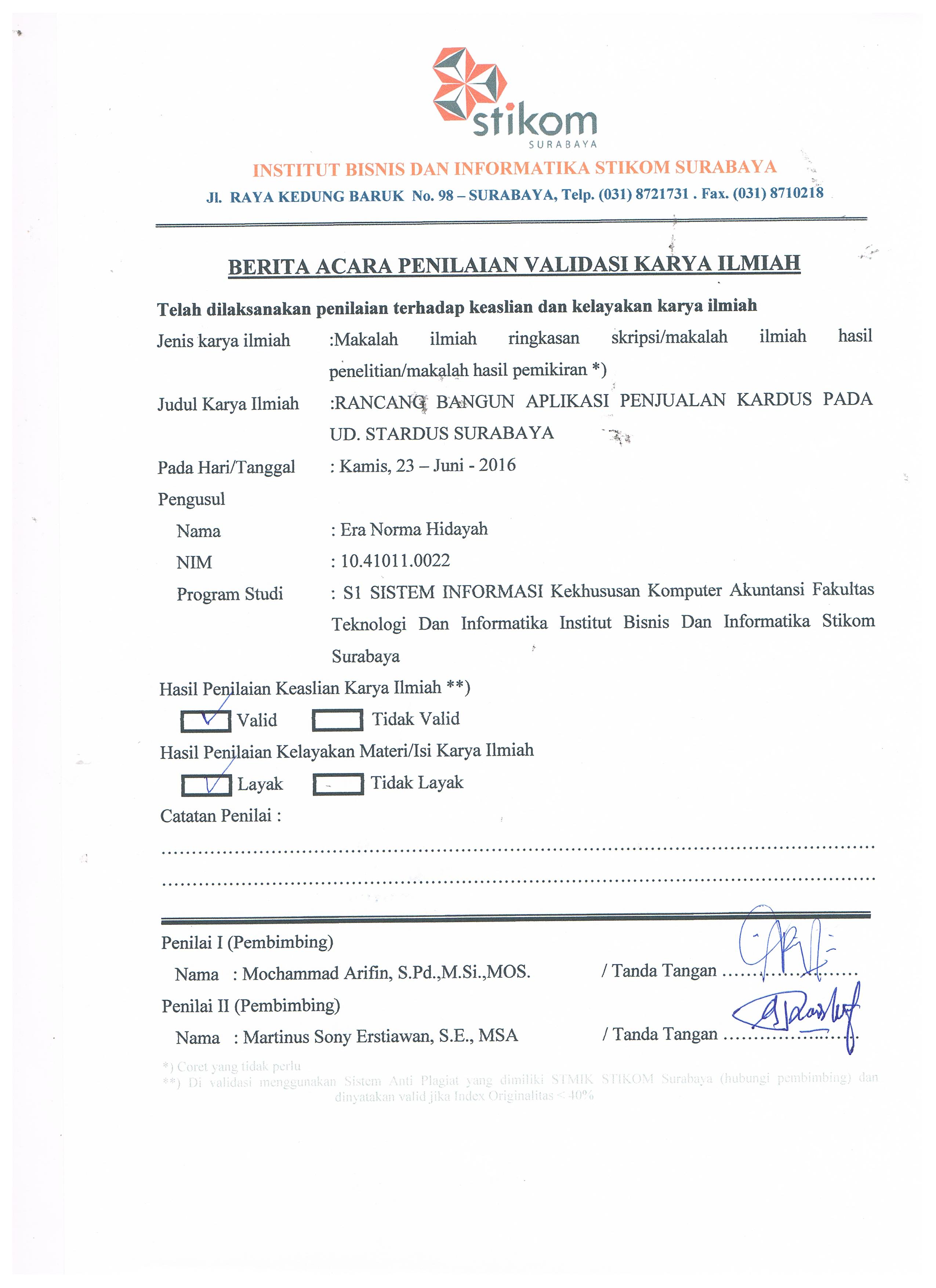 Rancang Bangun Aplikasi Penjualan Kardus Pada UD. Stradus Surabaya