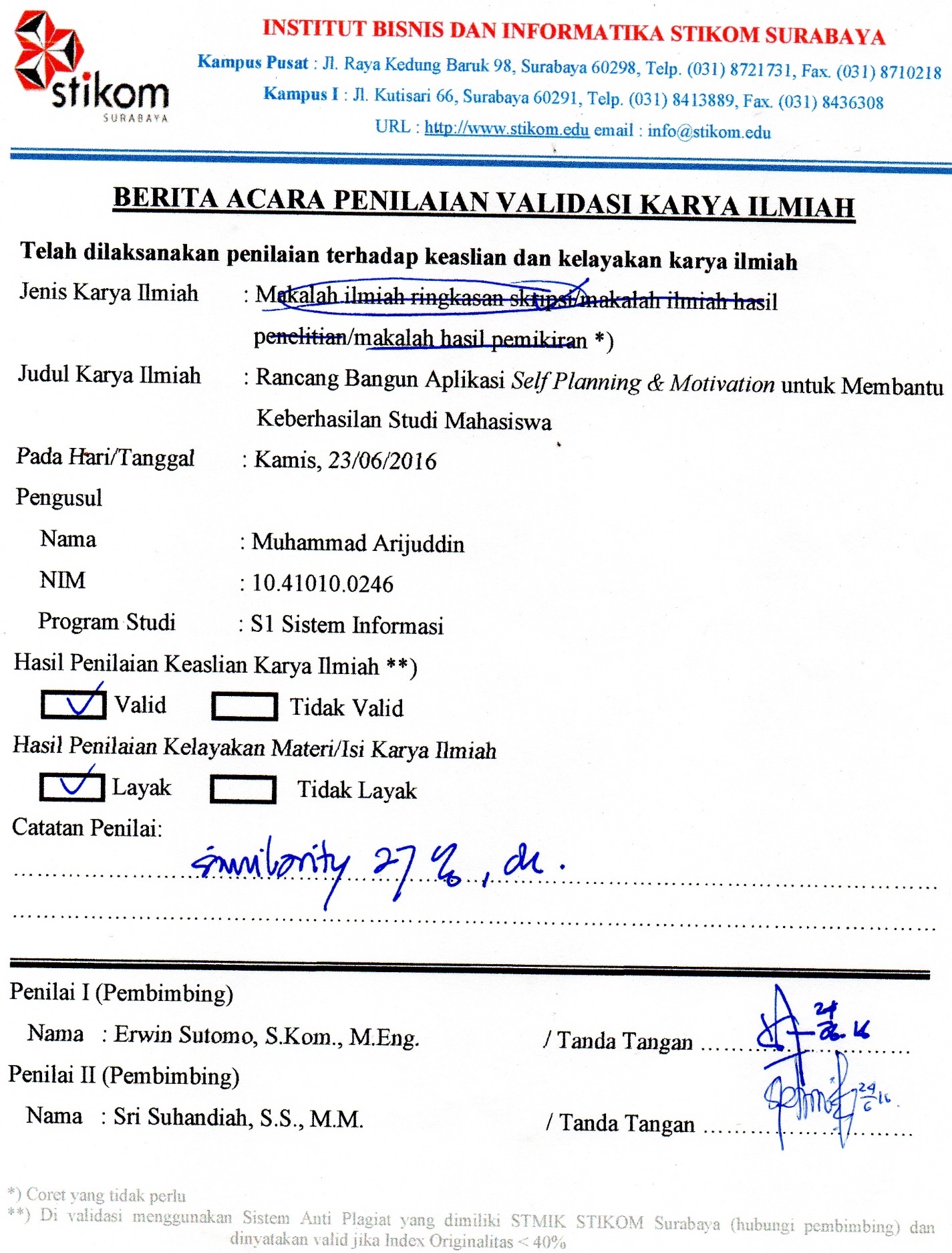 Rancang Bangun Aplikasi Self Planning & Motivation Untuk Membantu Keberhasilan Studi Mahasiswa