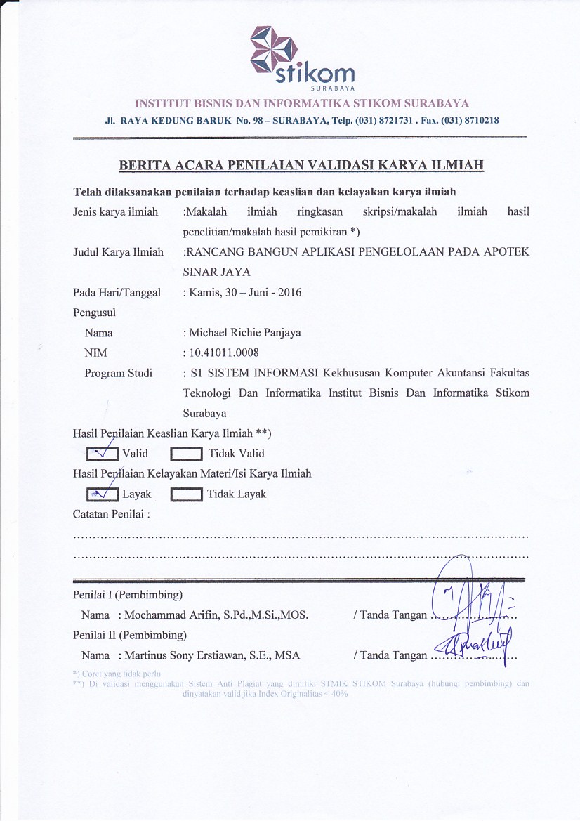 Rancang Bangun Aplikasi Pengelolaan Pada Apotek Sinar Jaya