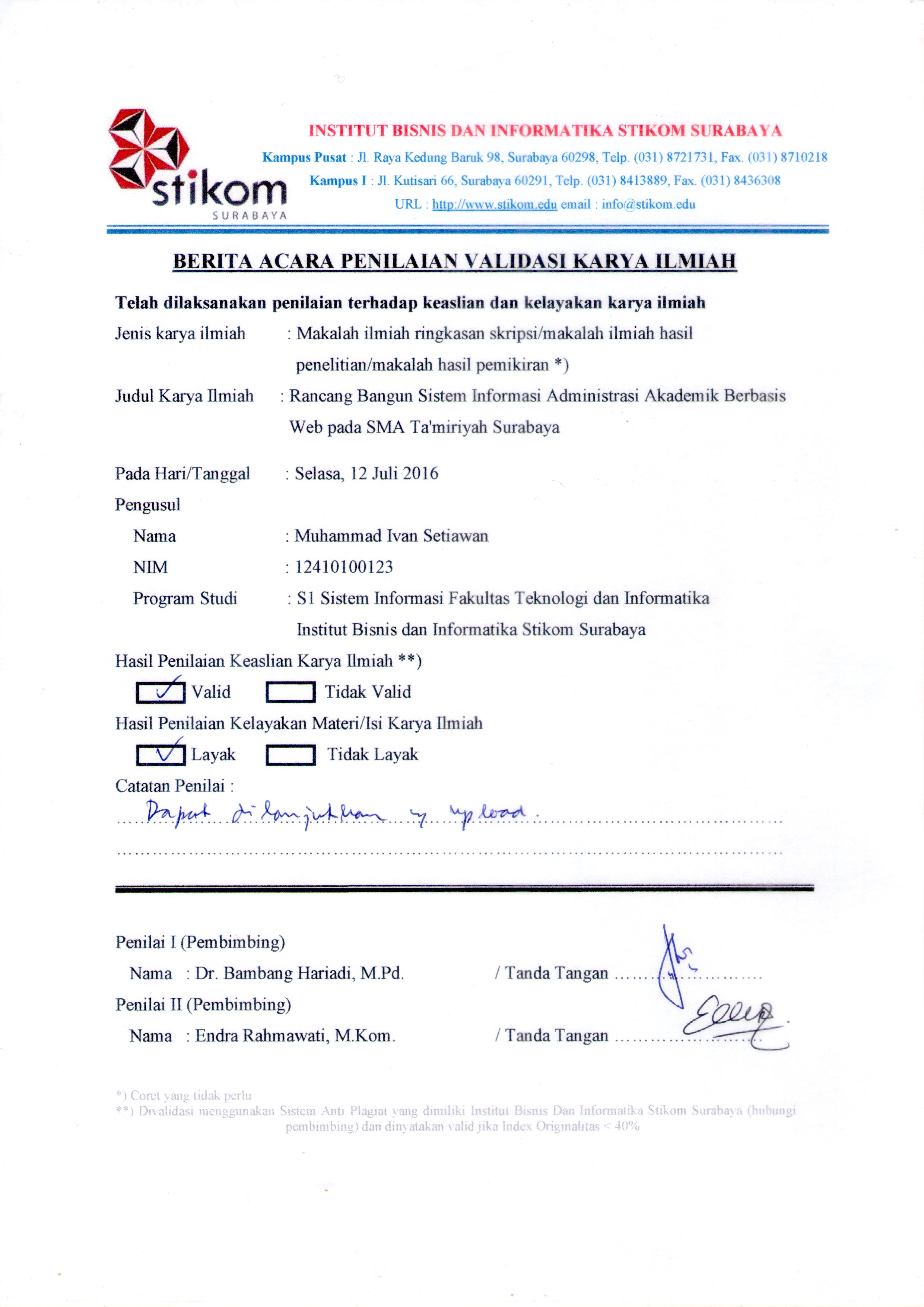 RANCANG BANGUN SISTEM INFORMASI ADMINISTRASI AKADEMIK BERBASIS WEB PADA SMA TA’MIRIYAH SURABAYA