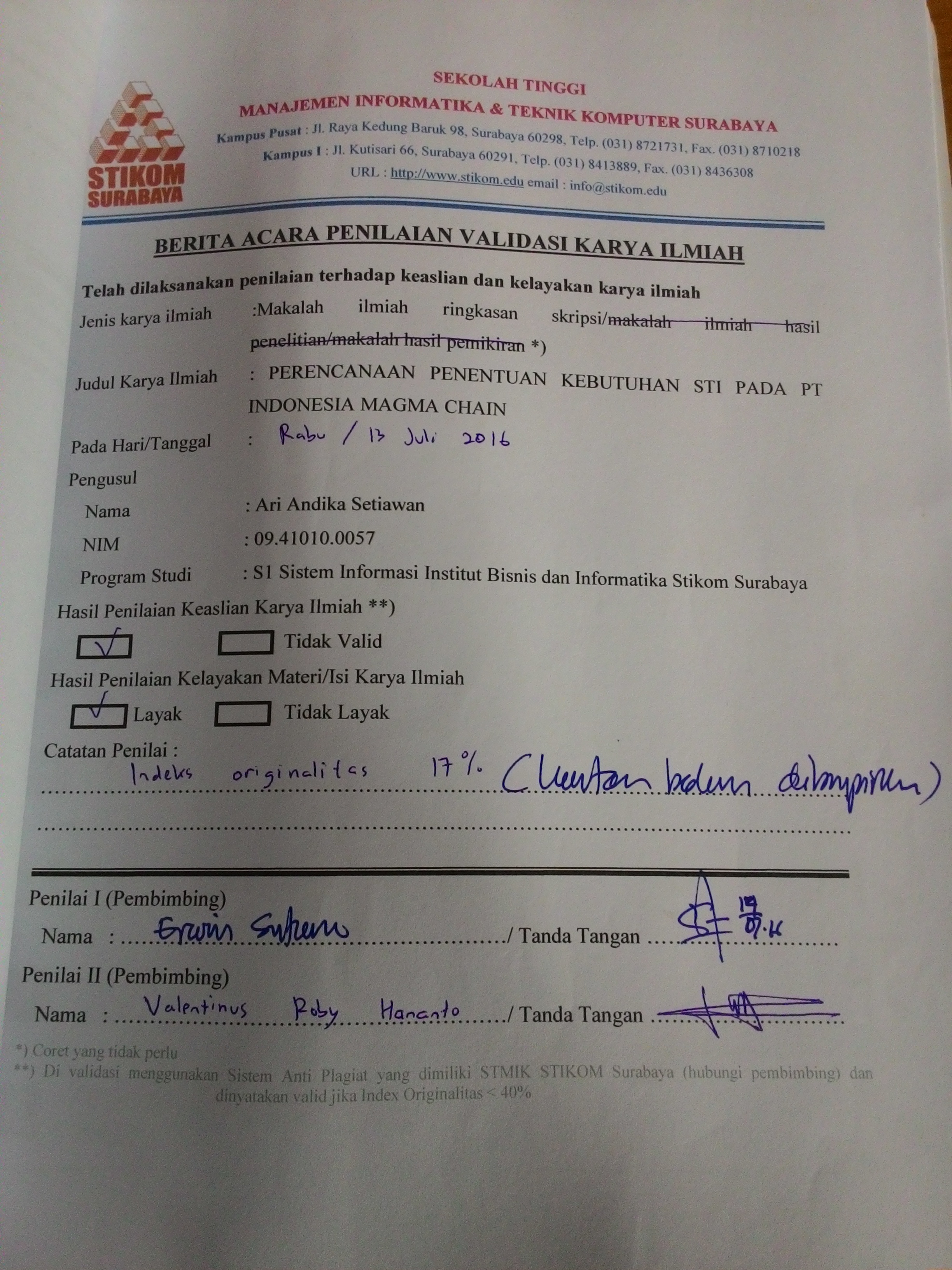 PERENCANAAN PENENTUAN KEBUTUHAN STI PADA PT INDONESIA MAGMA CHAIN