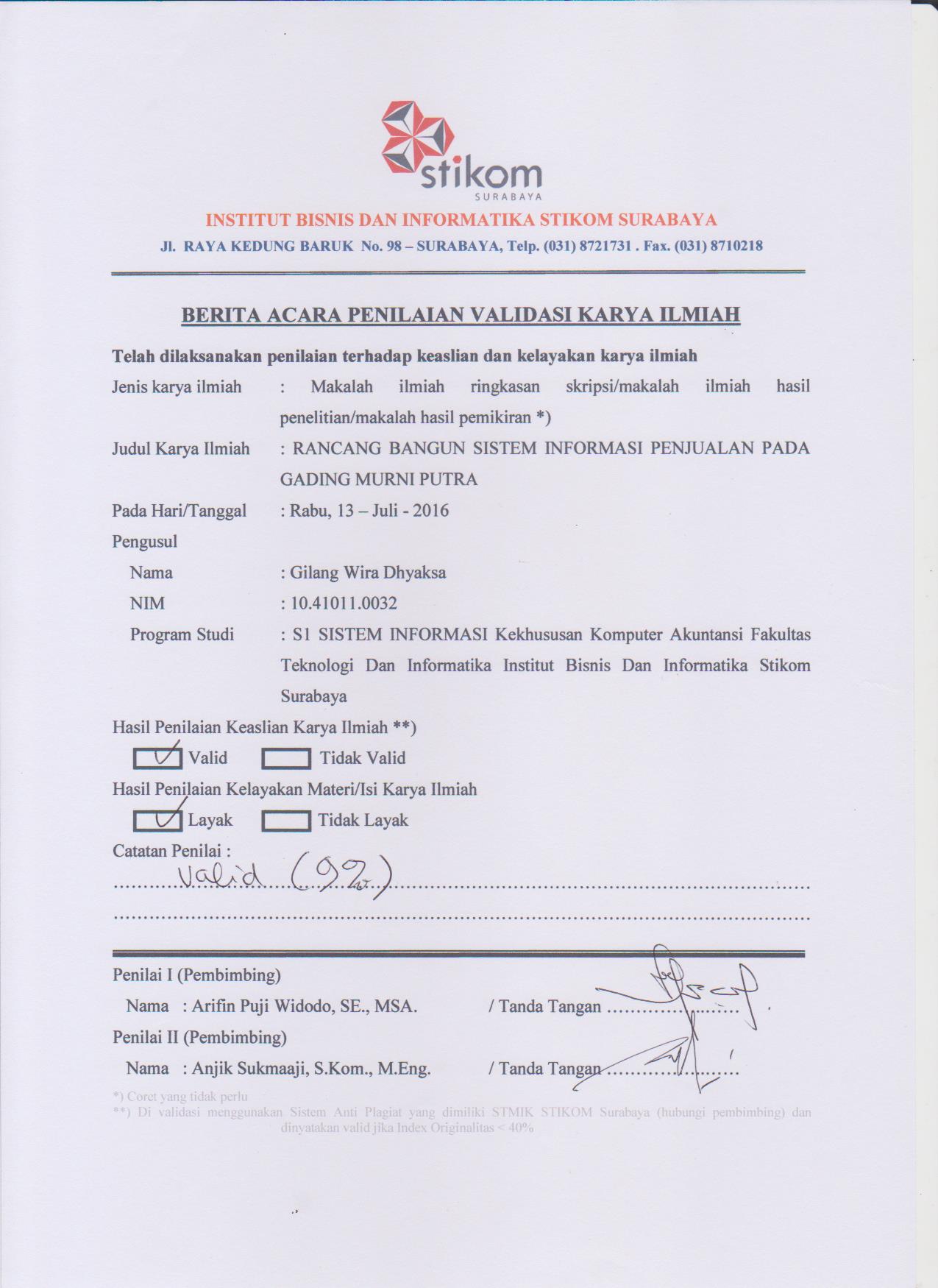 Rancang Bangun Sistem Informasi Penjualan Pada Gading Murni Putra