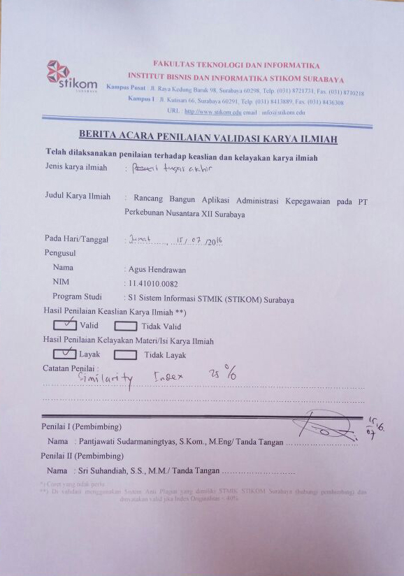 Rancang Bangun Aplikasi Administrasi Kepegawaian Pada PT Perkebunan Nusantara XII (Persero) Surabaya