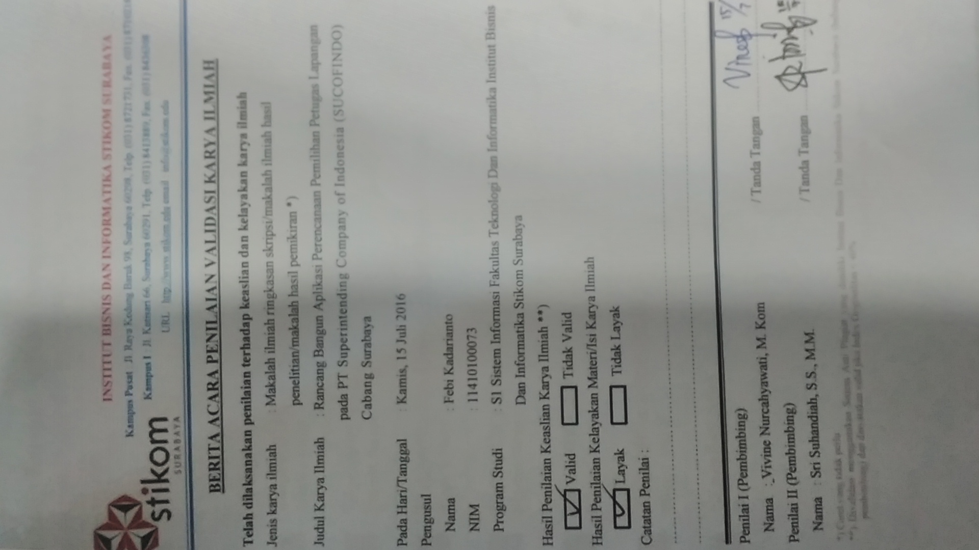 Management and data processing the choice of officers field recently applied PT SUCOFINDO done manually and less objective. It was considered objective is an election officers who is not based on their competence the elections without seeing lifetimes and track record of activity the officers. Because curriculum vitae and track record wasn’t archived  well in addition to compare between the officers one with other officers needed accurate and time because it’s should be flip through the curriculum vitae tree and track record. Factor the choice of officers the field namely curriculum vitae tree and track record, the status of the presence of officers, and calculation manday ( salary ) per day.