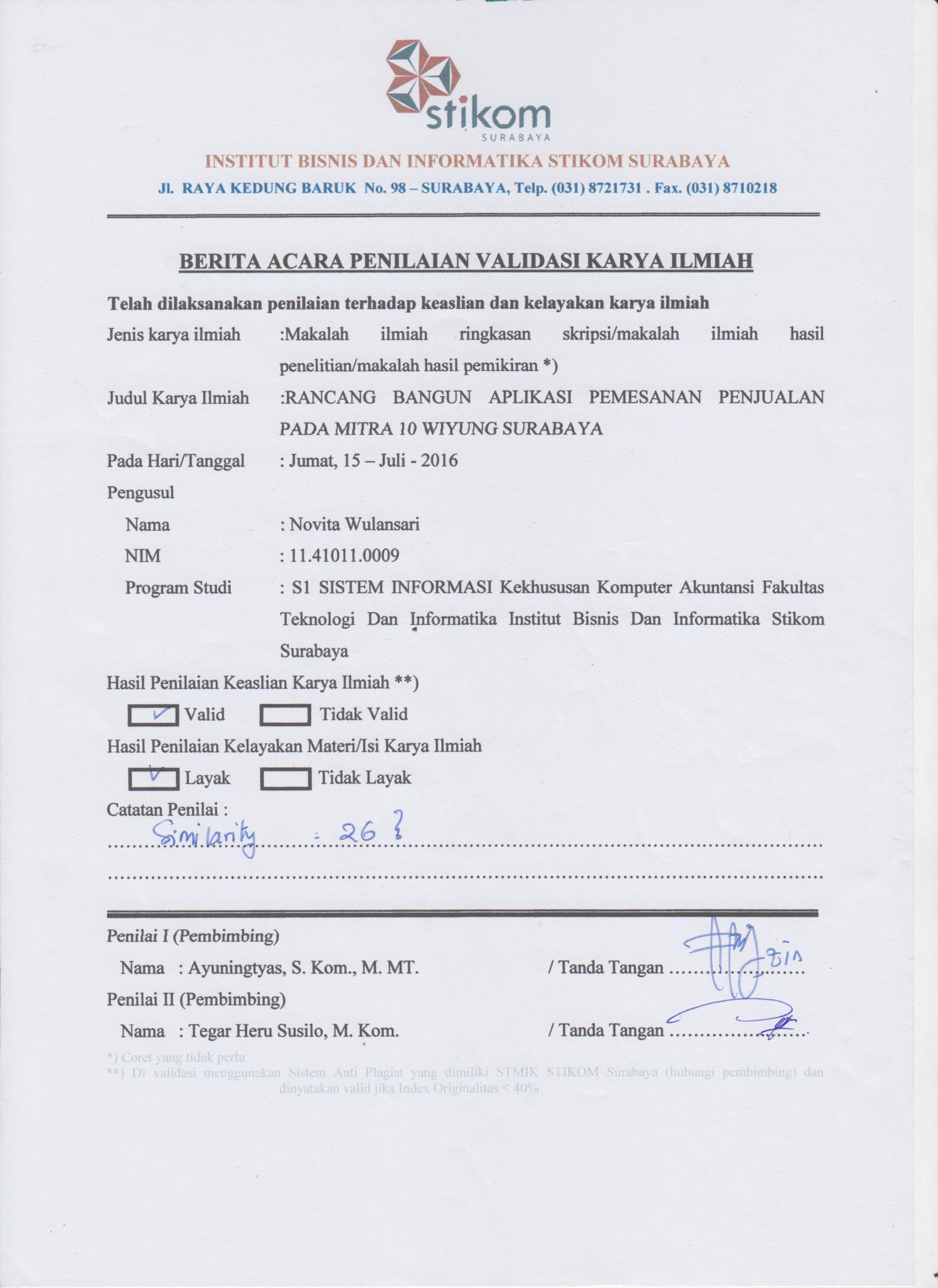 Rancang Bangun Aplikasi Pemesanan Penjualan Secara Online (Studi Kasus Mitra 10 Wiyung Surabaya)