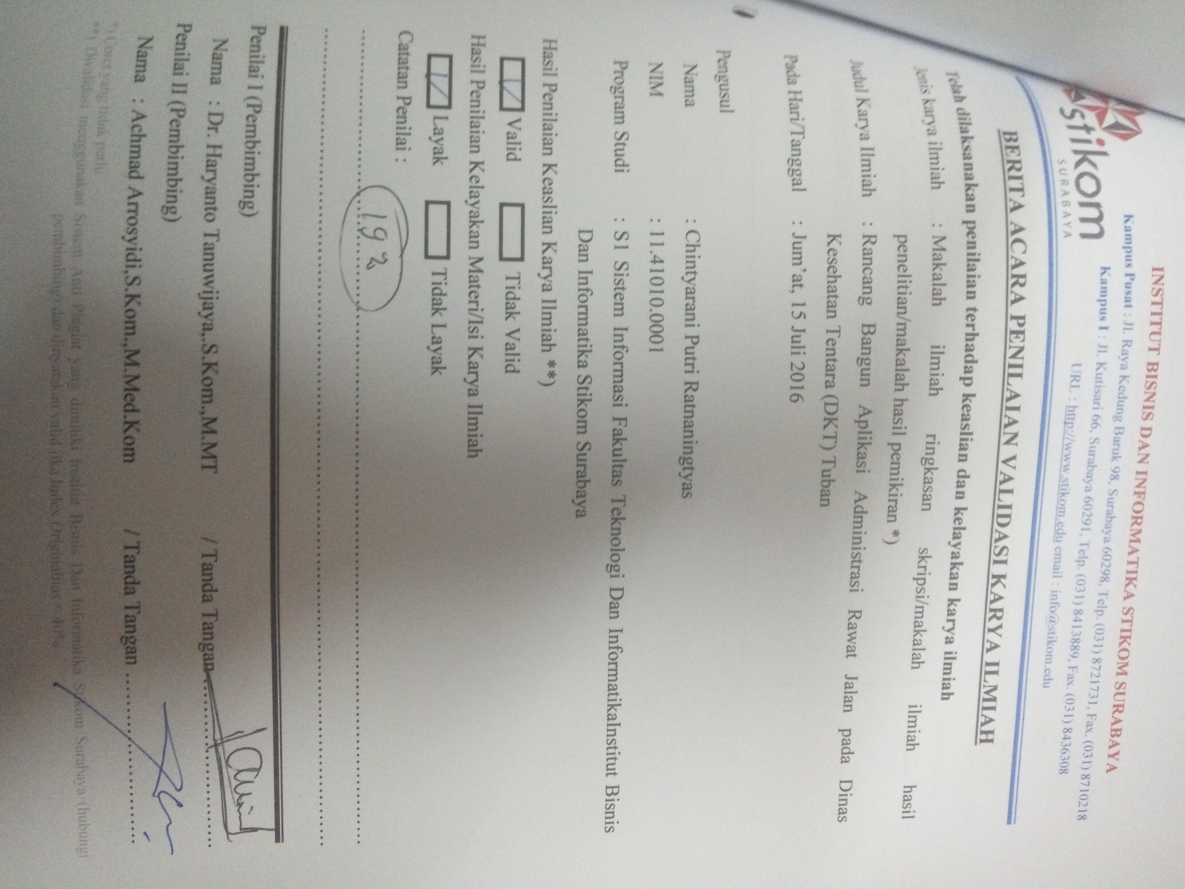 Dinas Kesehatan Tentara (DKT) Tuban is a Army Health is hospital provide by the Indonesian Army that also serve to public people. There are many  problems on DKT Tuban such as validation on medical record that happen effect by unintegrated medical record from registration until a month of patiens, patiens visit list, financial reports.