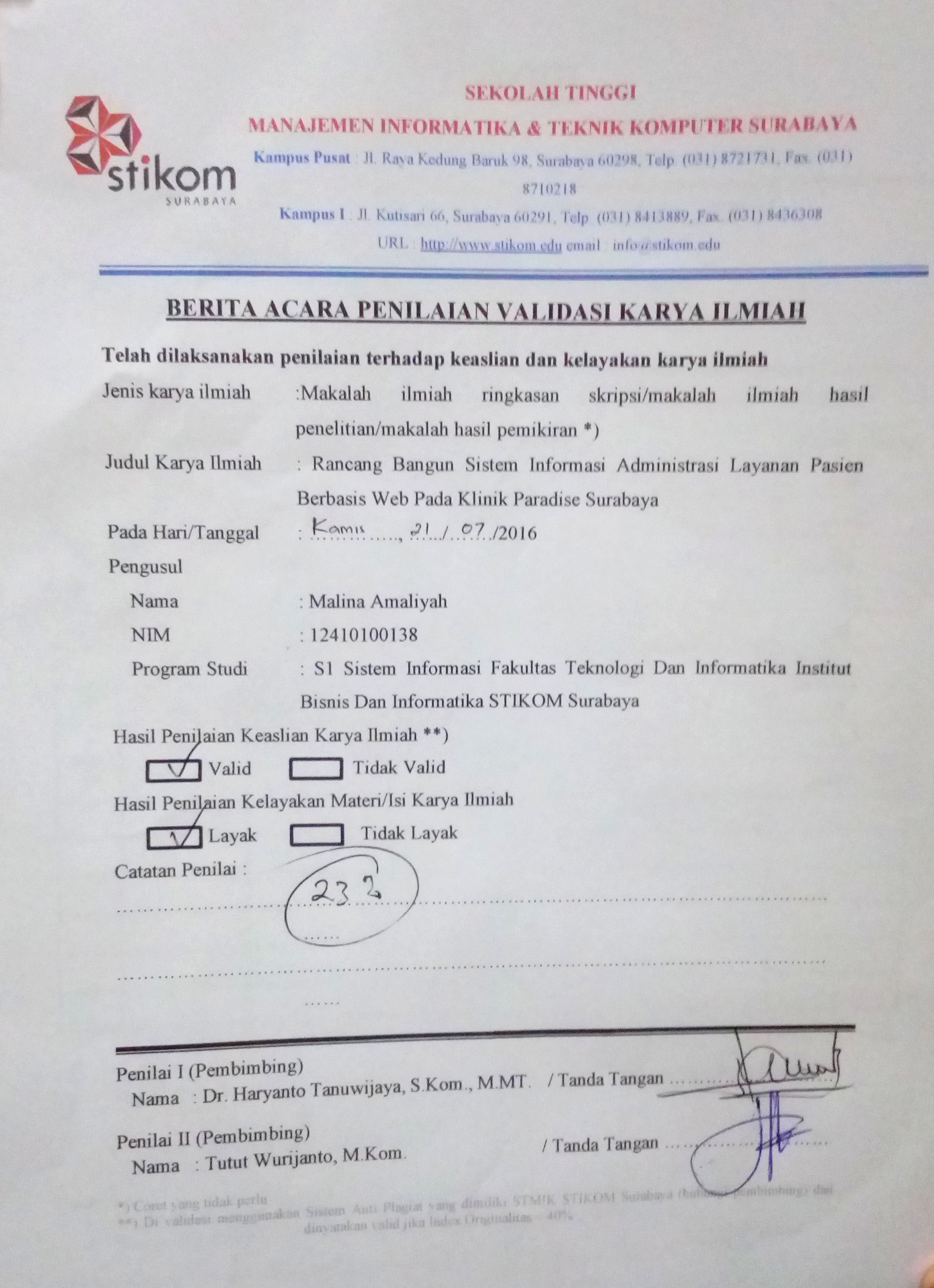 Rancang Bangun Sistem Informasi Administrasi Layanan Pasien Berbasis Web Pada Klinik Paradise Surabaya