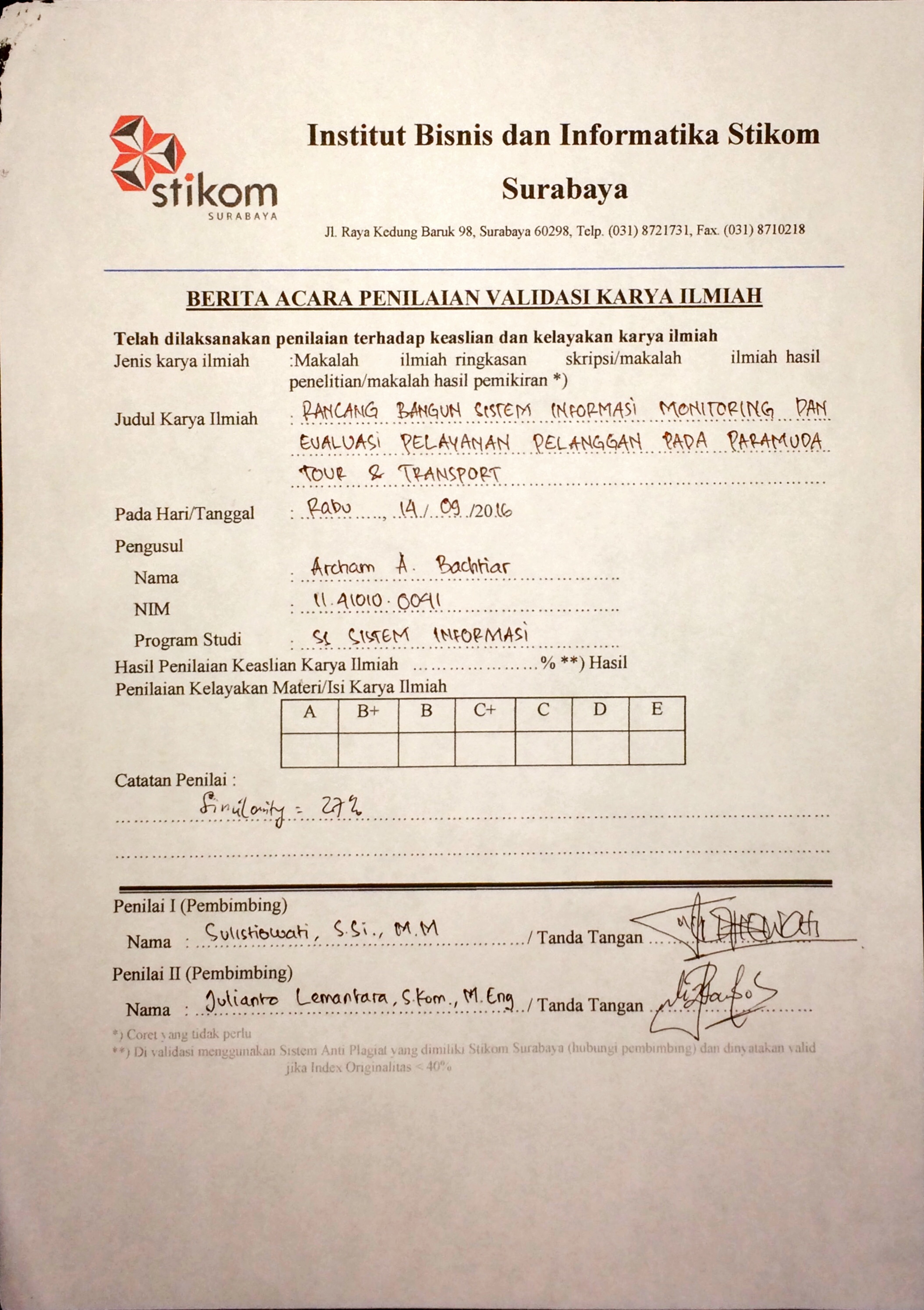 RANCANG BANGUN SISTEM INFORMASI MONITORING DAN EVALUASI PELAYANAN PELANGGAN PADA PARAMUDA TOUR & TRANSPORT
