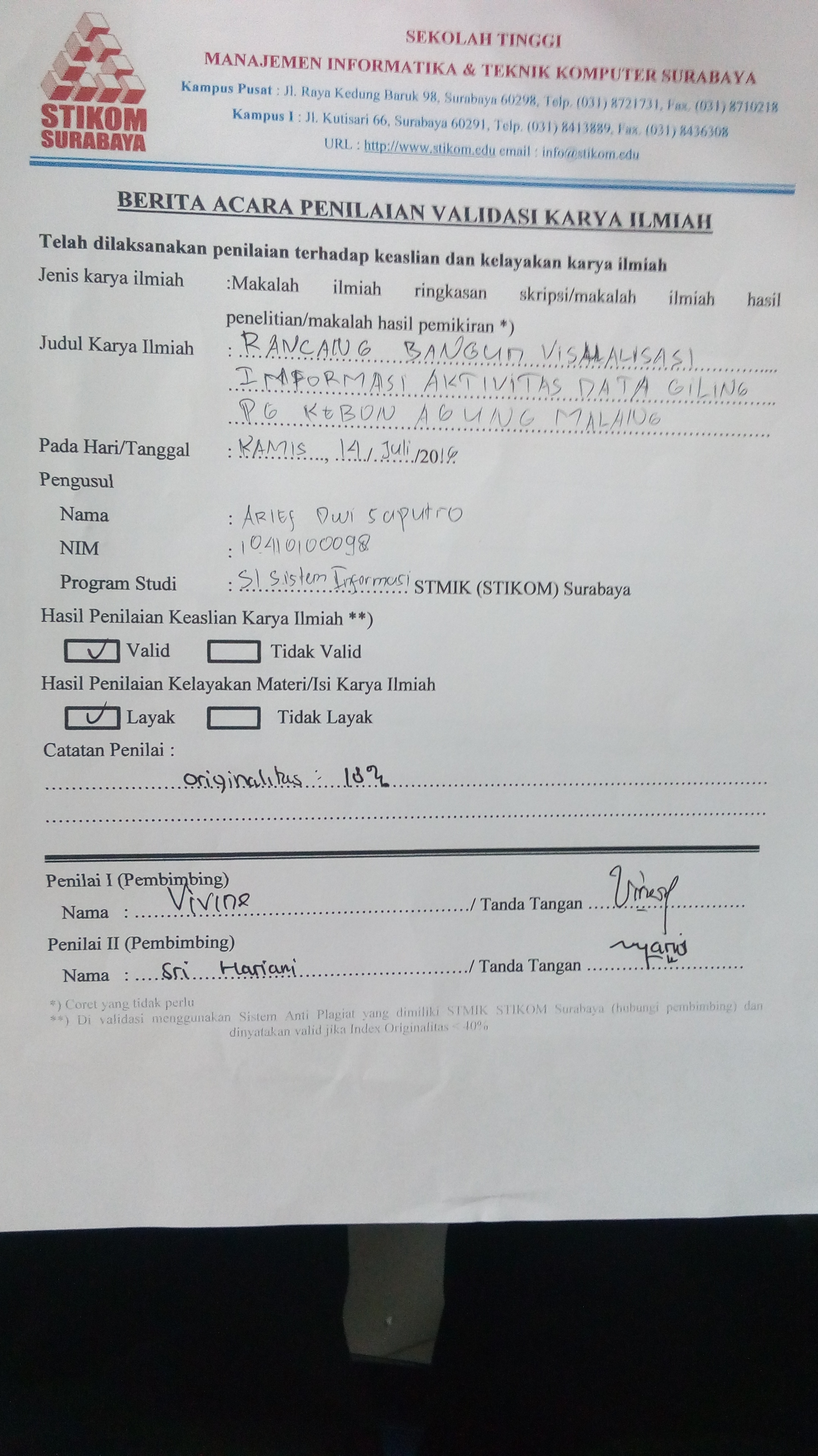 Rancang Bangun Visualisasi Informasi Aktivitas Data Giling Pada Pabrik Gula Kebon Agung Malang
