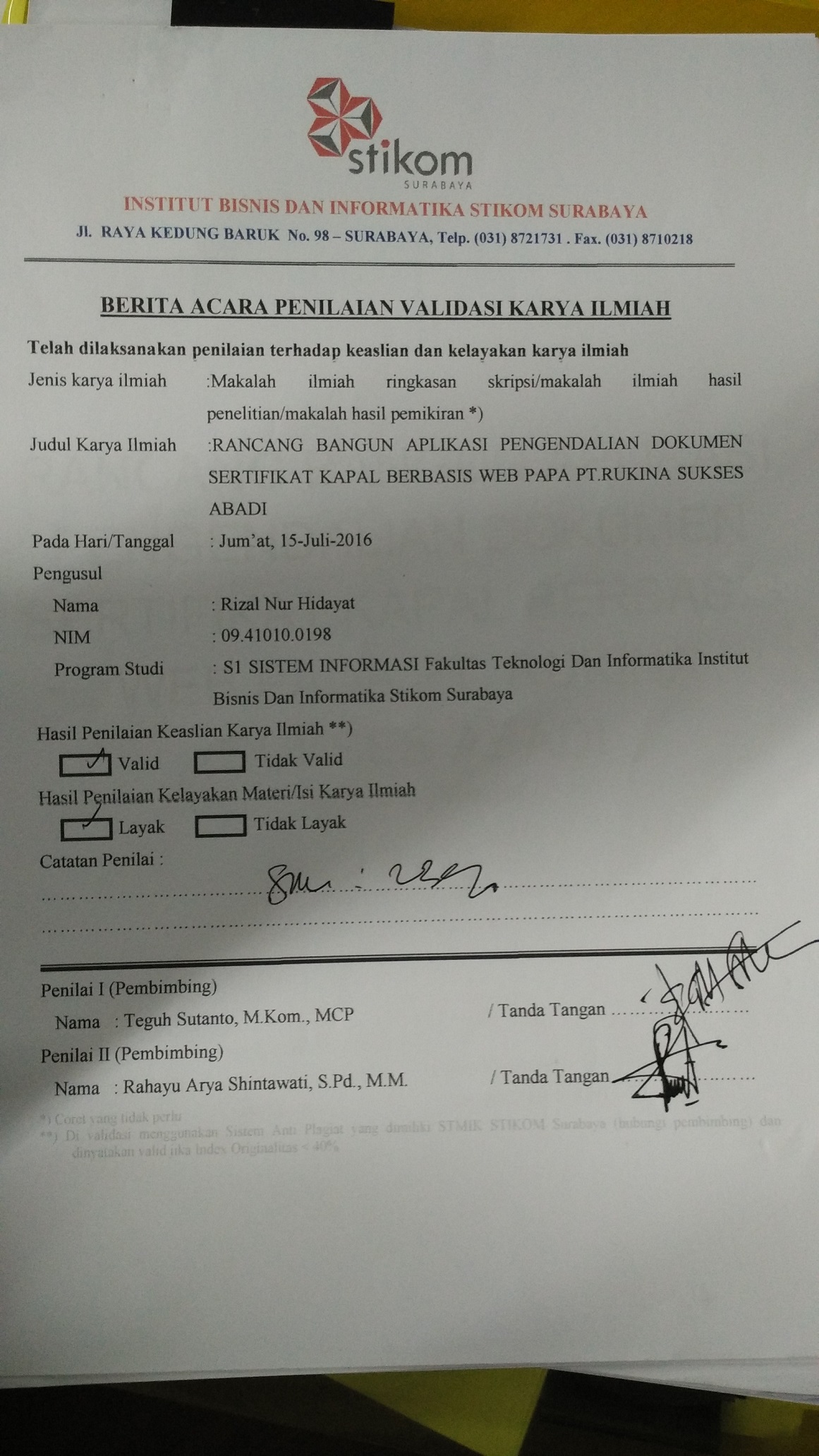 Rancang Bangun Aplikasi Pengendalian Dokumen Sertifikat Kapal Berbasis Web Pada PT. Rukina Sukses Abadi