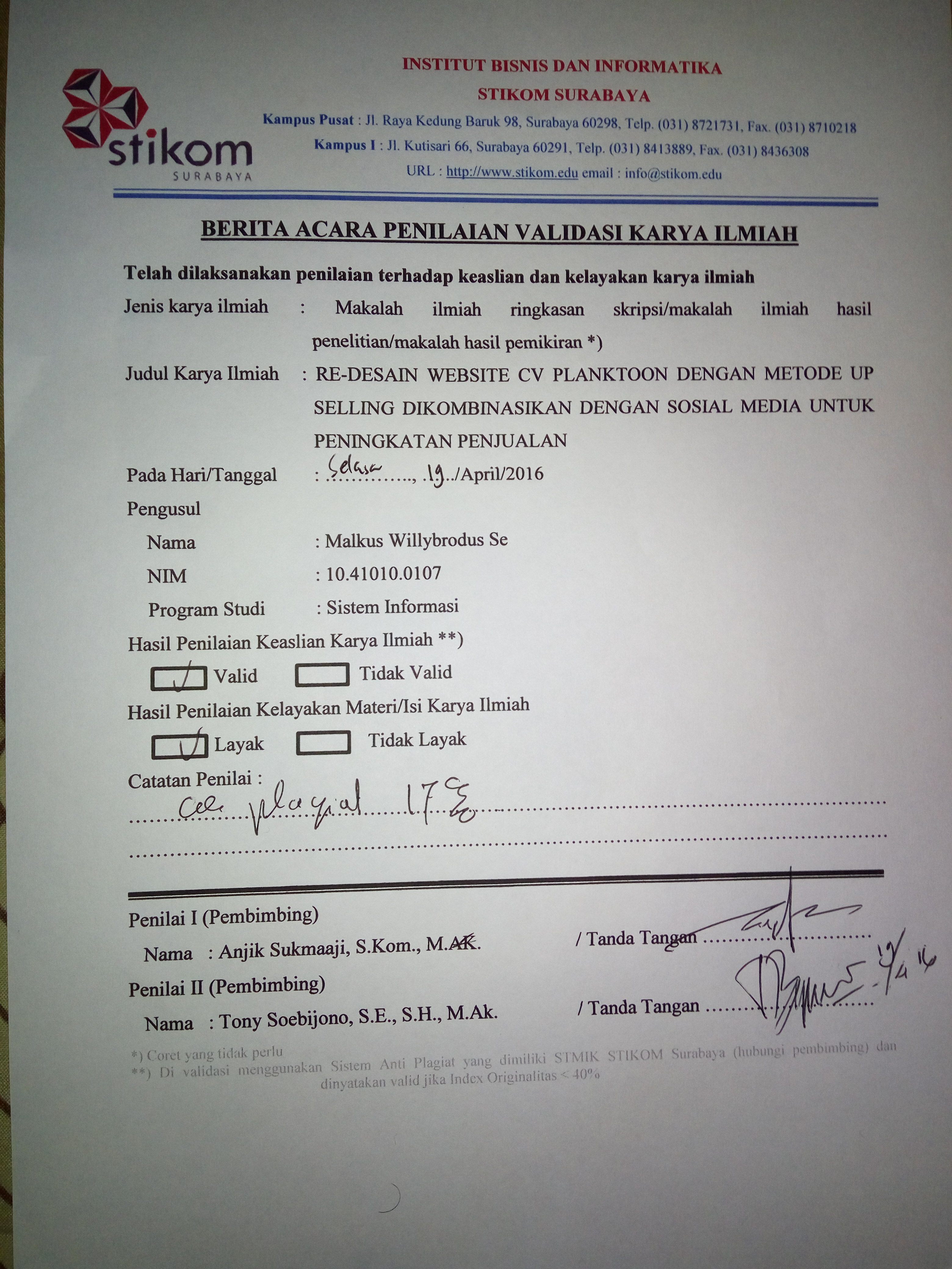 Re-Desain Website Cv Planktoon Dengan Metode Up Selling Dikombinasikan Dengan Sosial Media Untuk Peningkatan Penjualan