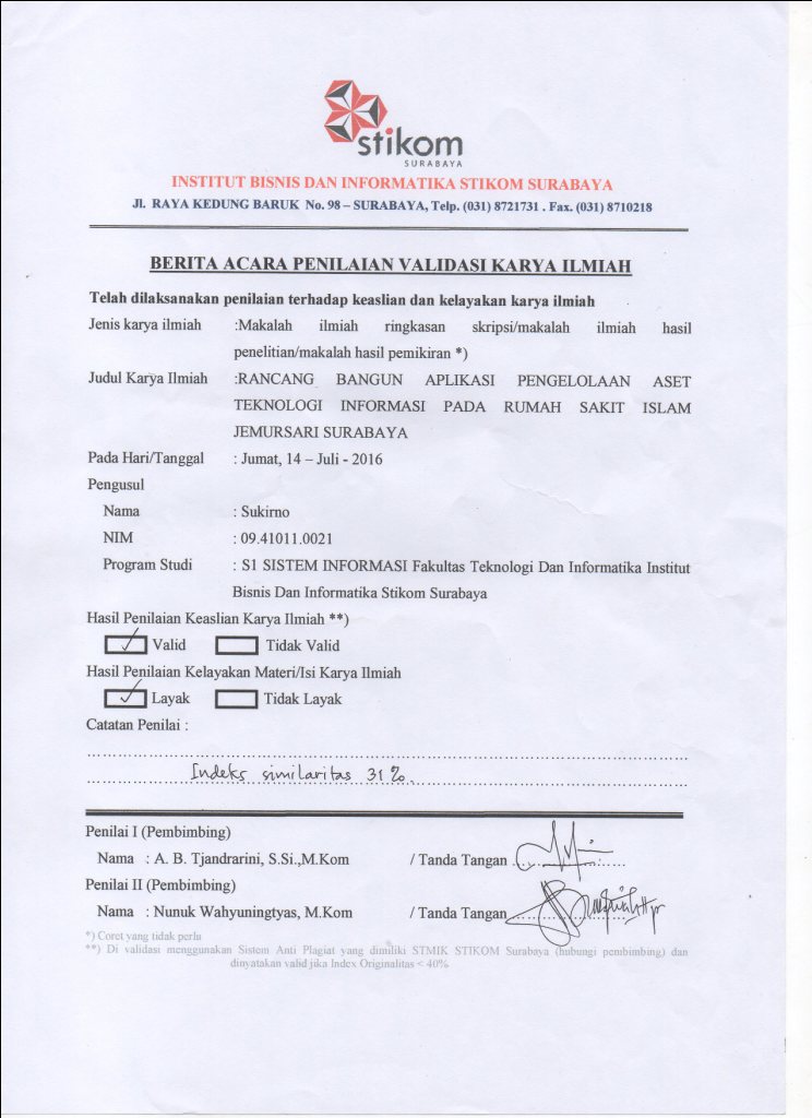 Rancang Bangun Aplikasi Pengelolaan Aset Teknologi Informasi Pada Rumah Sakit Islam Jemursari Surabaya
