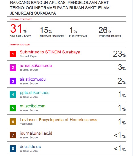 Islamic Hospital Jemursari Surabaya is one of the agencies that provide health services to the community. In providing health services for the community, the hospital uses information technology to support the activities of the public service. The problems faced today, namely the recording of information technology assets that are still using Microsoft Excel so that the information obtained can not be uptodate and not archived properly. This resulted in the decision by the management to be blocked. Based on these descriptions, the solution to overcome that by using a specialized desktop application that can be directly accessed client server integrated and accommodated to all stakeholders. Asset management application using the straight-line method is used to manage the entire information technology assets ranging procurement, receipt, repair, removal, shrinkage, until removal. The process of implementation and evaluation of a system that has been carried out, indicates that the application of asset management is able to provide information technology assets comprehensive information relating to the procurement, receipt, repair, removal, shrinkage, deletion and reporting of all transactions, and may provide asset reports are quick and precise , which can be used by management in making decisions.Downloads