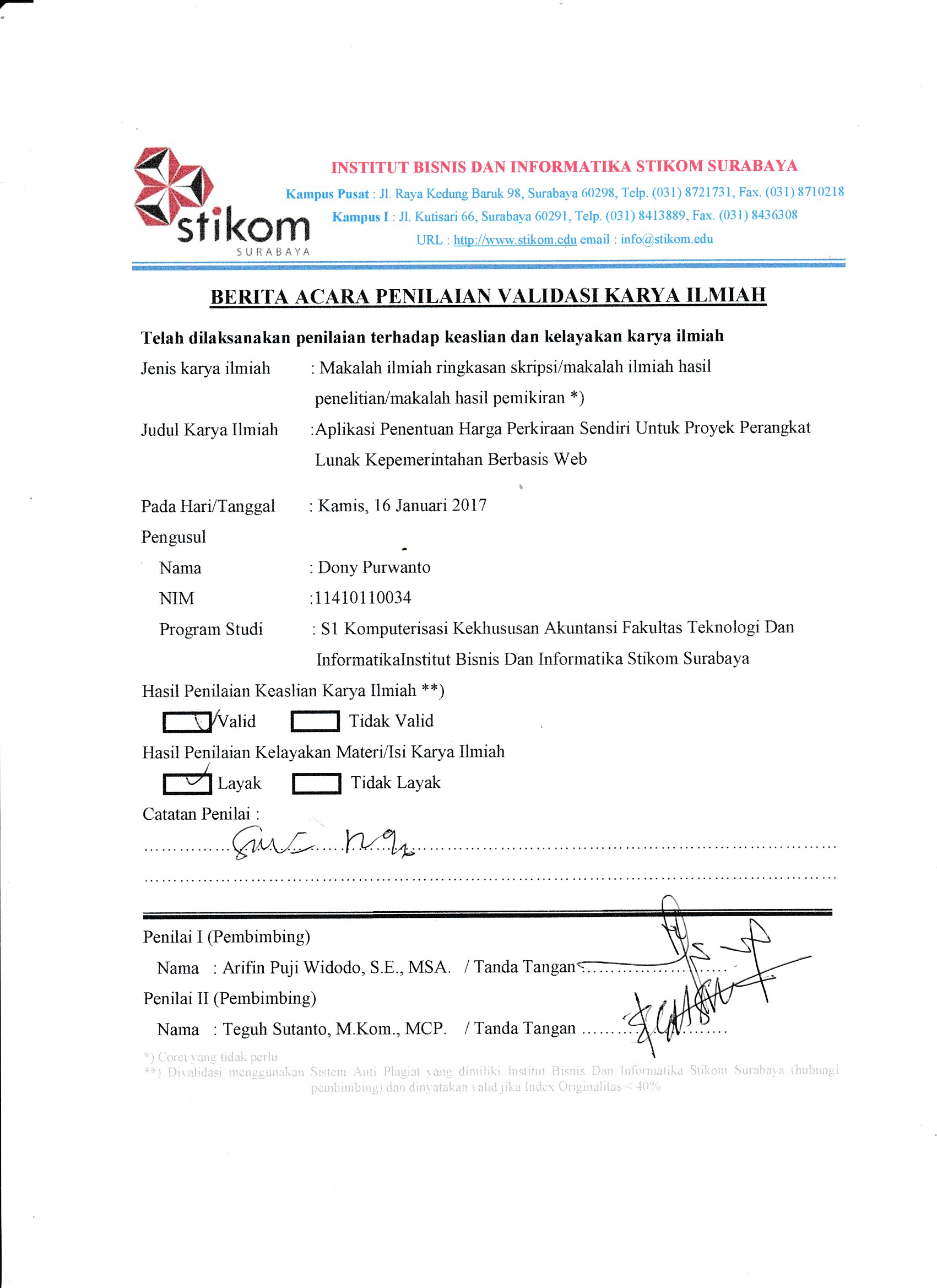 Aplikasi Penentuan Harga Perkiraan Sendiri Proyek Pengembangan Perangkat Lunak Kepemerintahan Berbasis Web