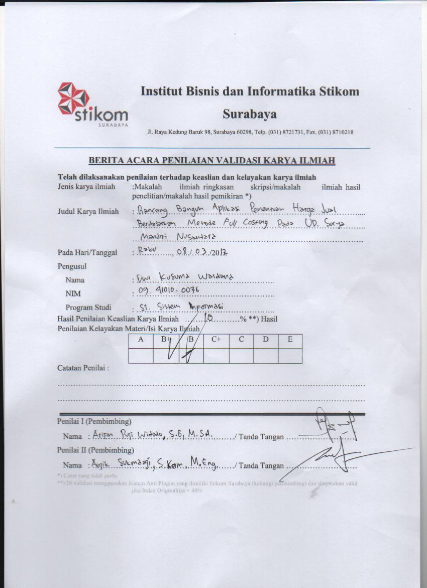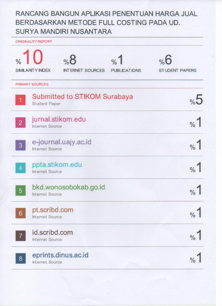 Rancang Bangun Aplikasi Penentuan Harga Jual Berdasarkan Metode Full Costing Pada UD. Surya Mandiri Nusantara