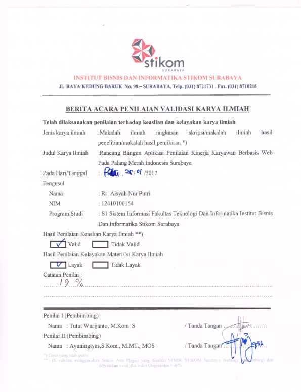 Rancang Bangun Aplikasi Penilaian Kinerja Berbasis Web Pada Palang Merah Indonesia Surabaya