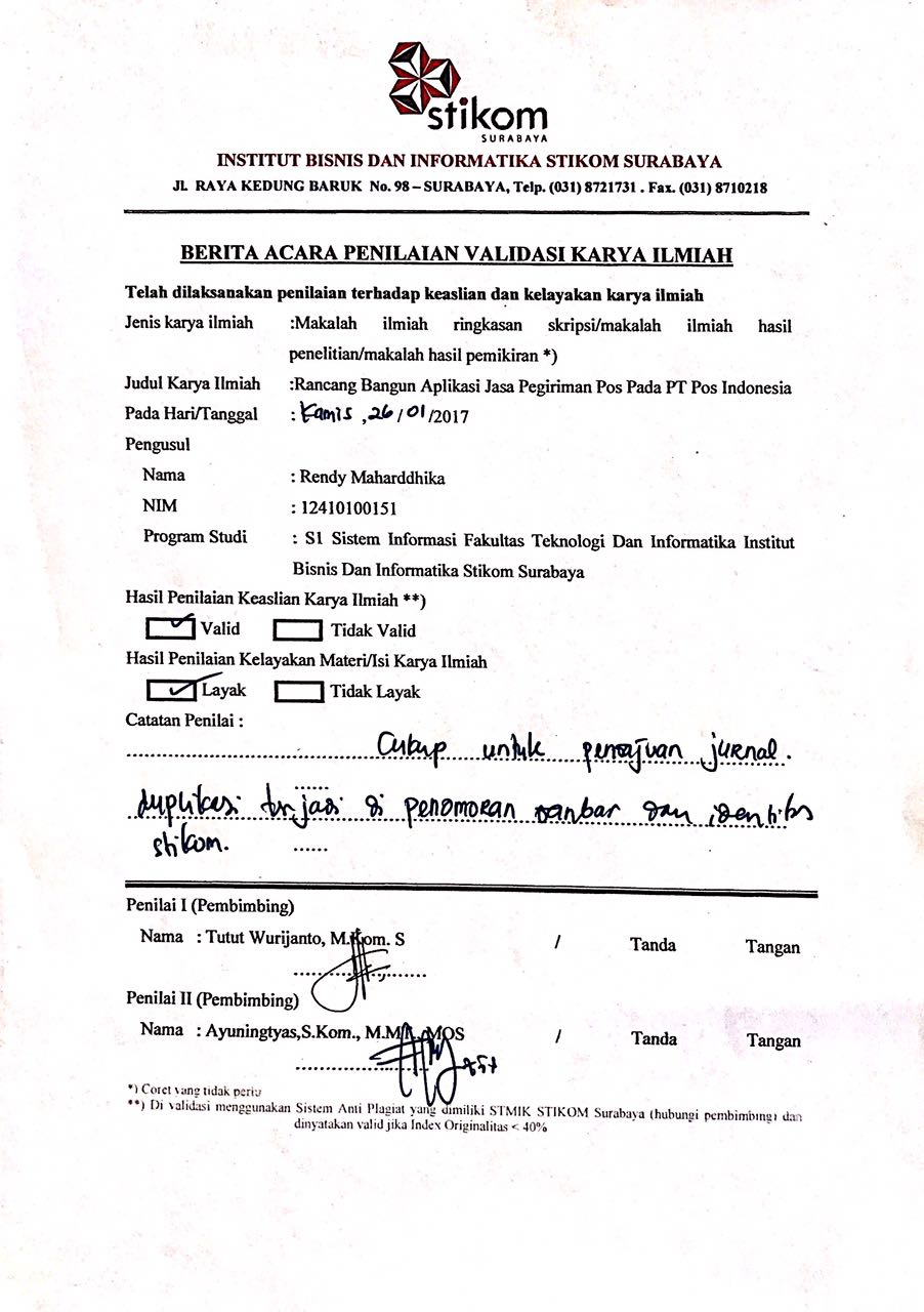 Rancang Bangun Aplikasi Jasa Pengiriman Pos Pada PT Pos Indonesia
