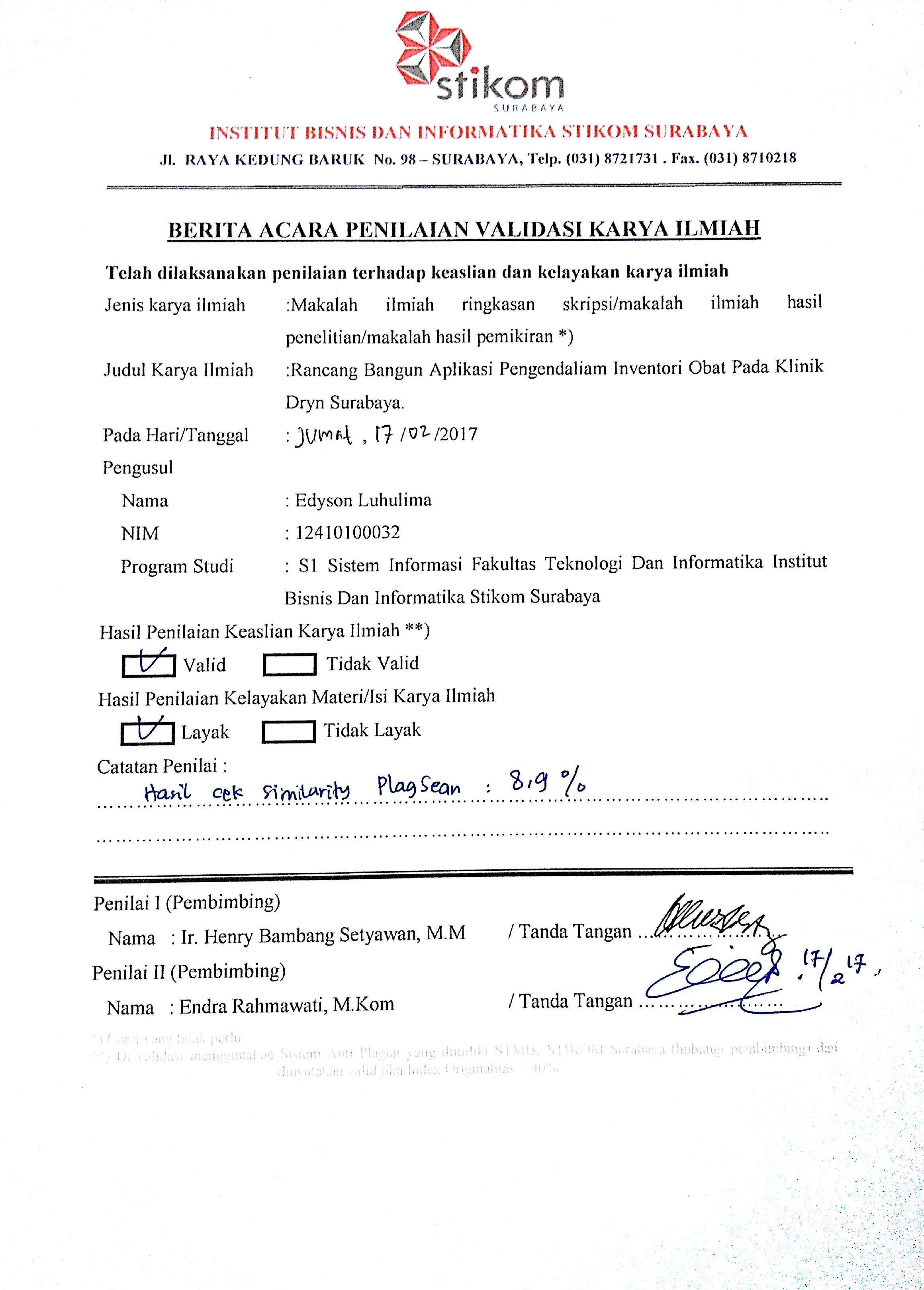RANCANG BANGUN APLIKASI PENGENDALIAN INVENTORI OBAT PADA KLINIK DRYN SURABAYA
