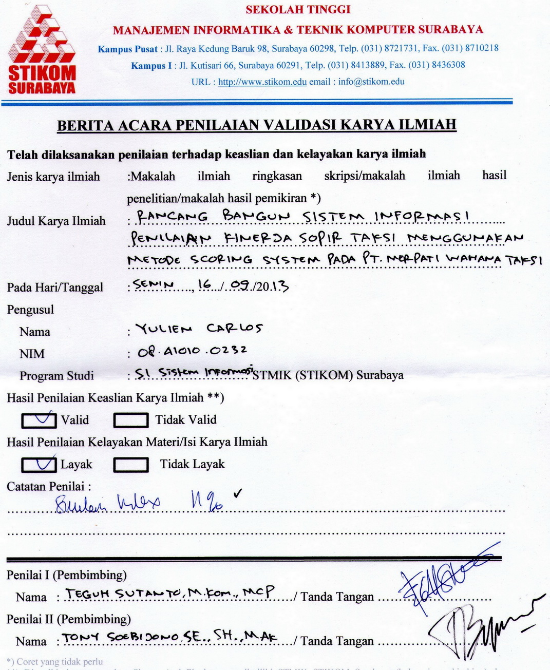 Rancang Bangun Sistem Informasi Penilaian Kinerja Sopir Taksi Menggunakan Metode Scoring System Pada PT. Merpati Wahana Taksi