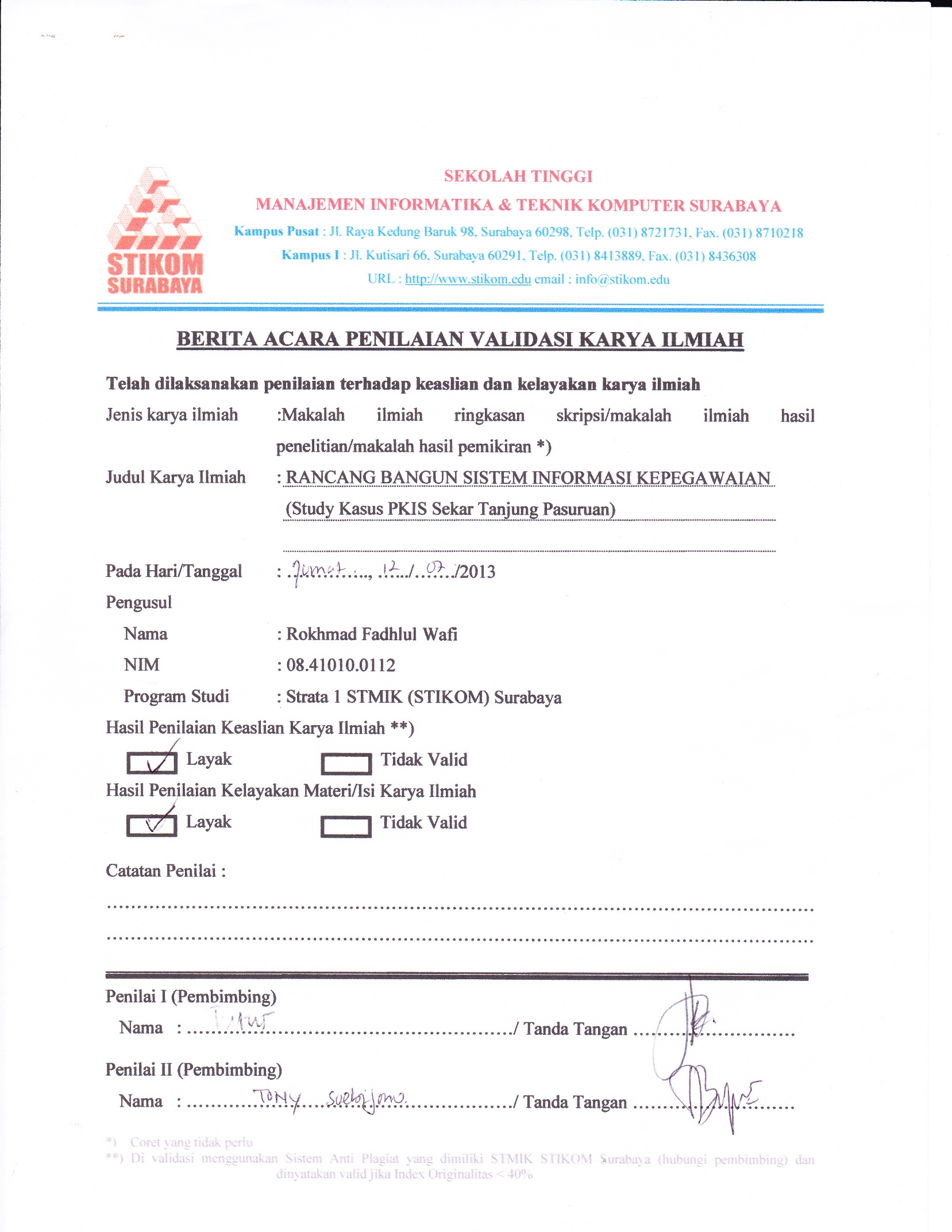 Rancang Bangun Sistem Informasi Kepegawaian (Studi Kasus PKIS Sekar Tanjung Pasuruan)