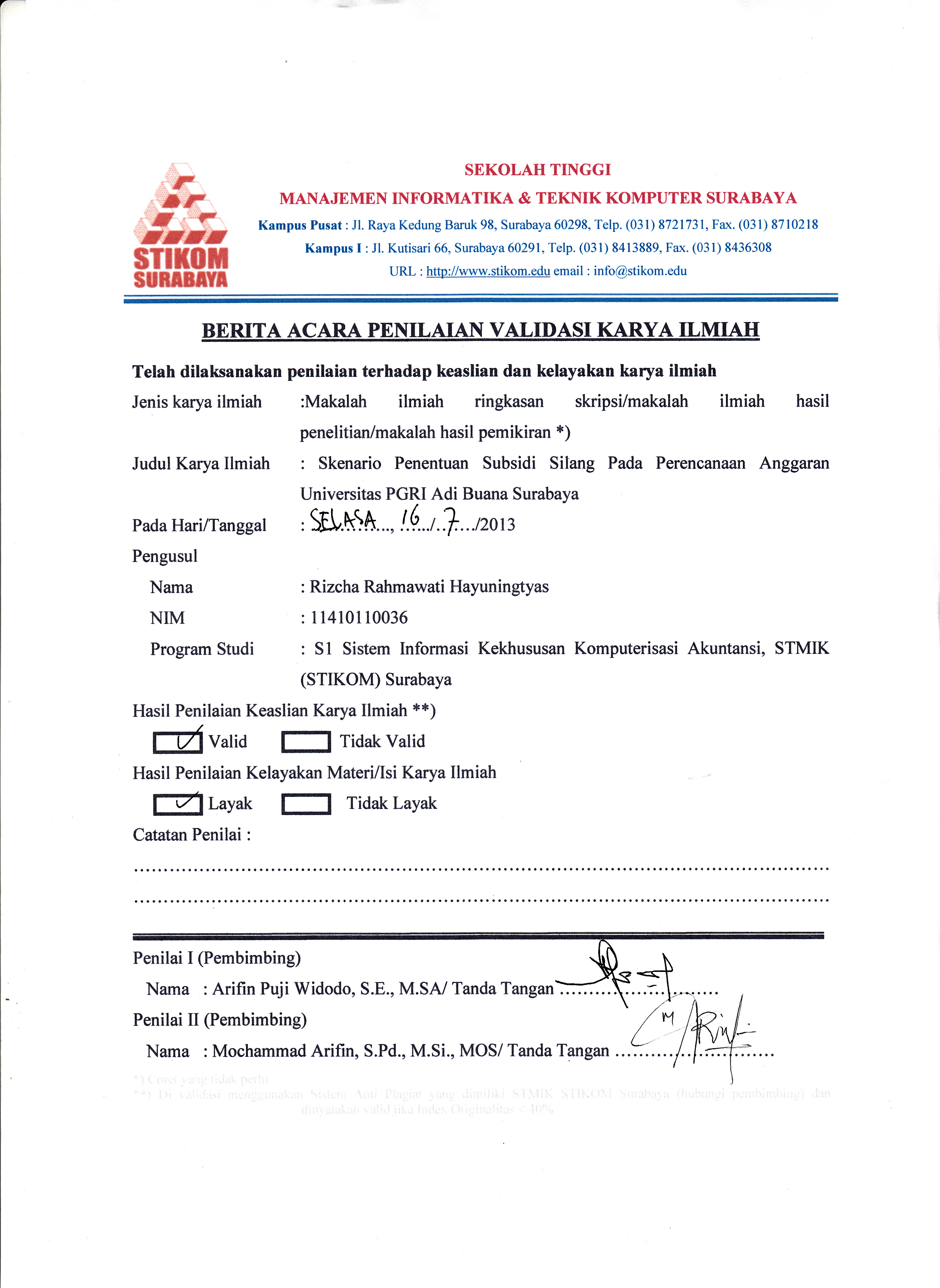 Skenario Penentuan Subsidi Silang Pada Perencanaan Anggaran Universitas PGRI Adi Buana Surabaya