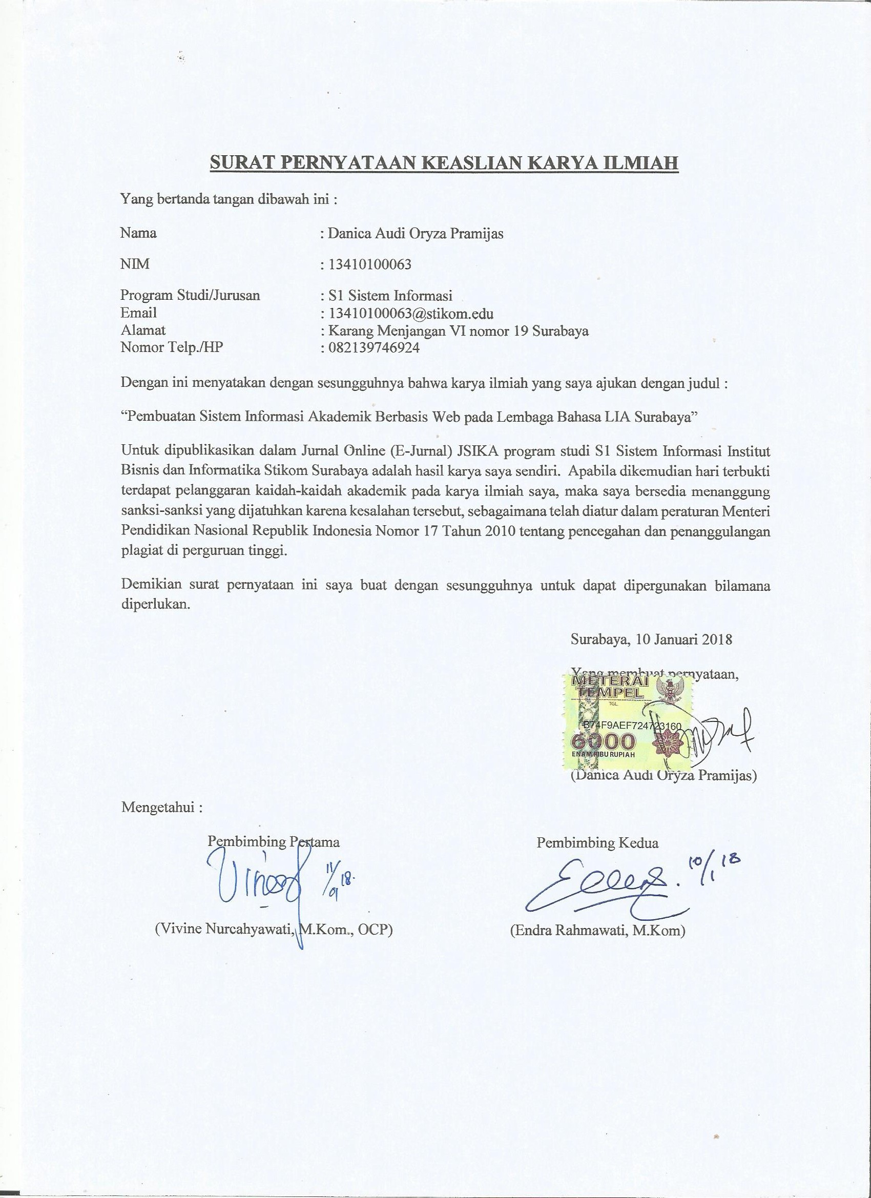 PEMBUATAN SISTEM INFORMASI AKADEMIK BERBASIS WEB PADA LEMBAGA BAHASA LIA SURABAYA