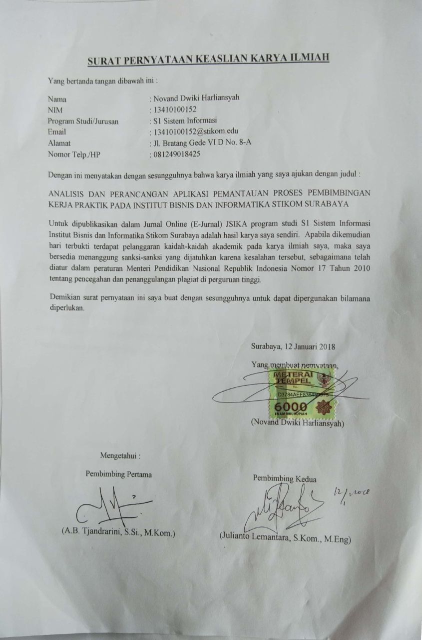 ANALISIS DAN PERANCANGAN APLIKASI PEMANTAUAN PROSES PEMBIMBINGAN KERJA PRAKTIK PADA INSTITUT BISNIS DAN INFORMATIKA STIKOM SURABAYA