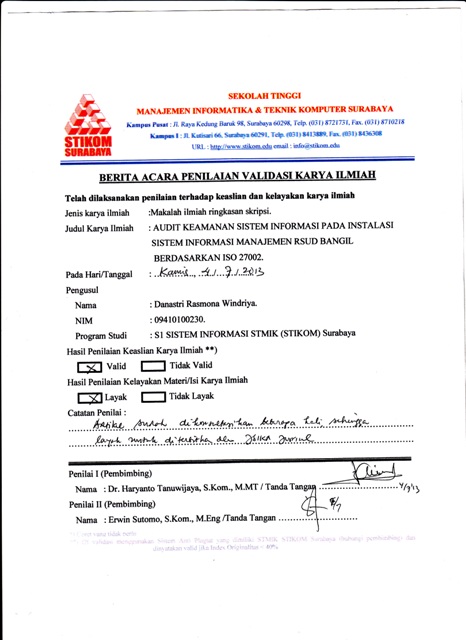 AUDIT KEAMANAN SISTEM INFORMASI PADA INSTALASI SISTEM INFORMASI MANAJEMEN RSUD BANGIL BERDASARKAN ISO 27002
