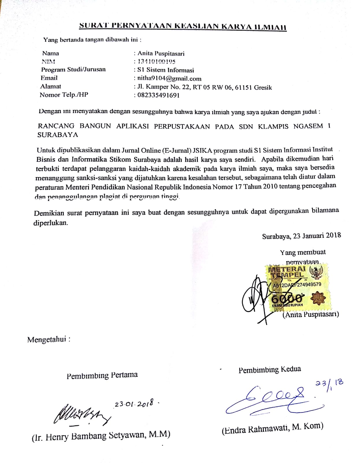 Library Aplication In SDN Klampis Ngasem I Surabaya