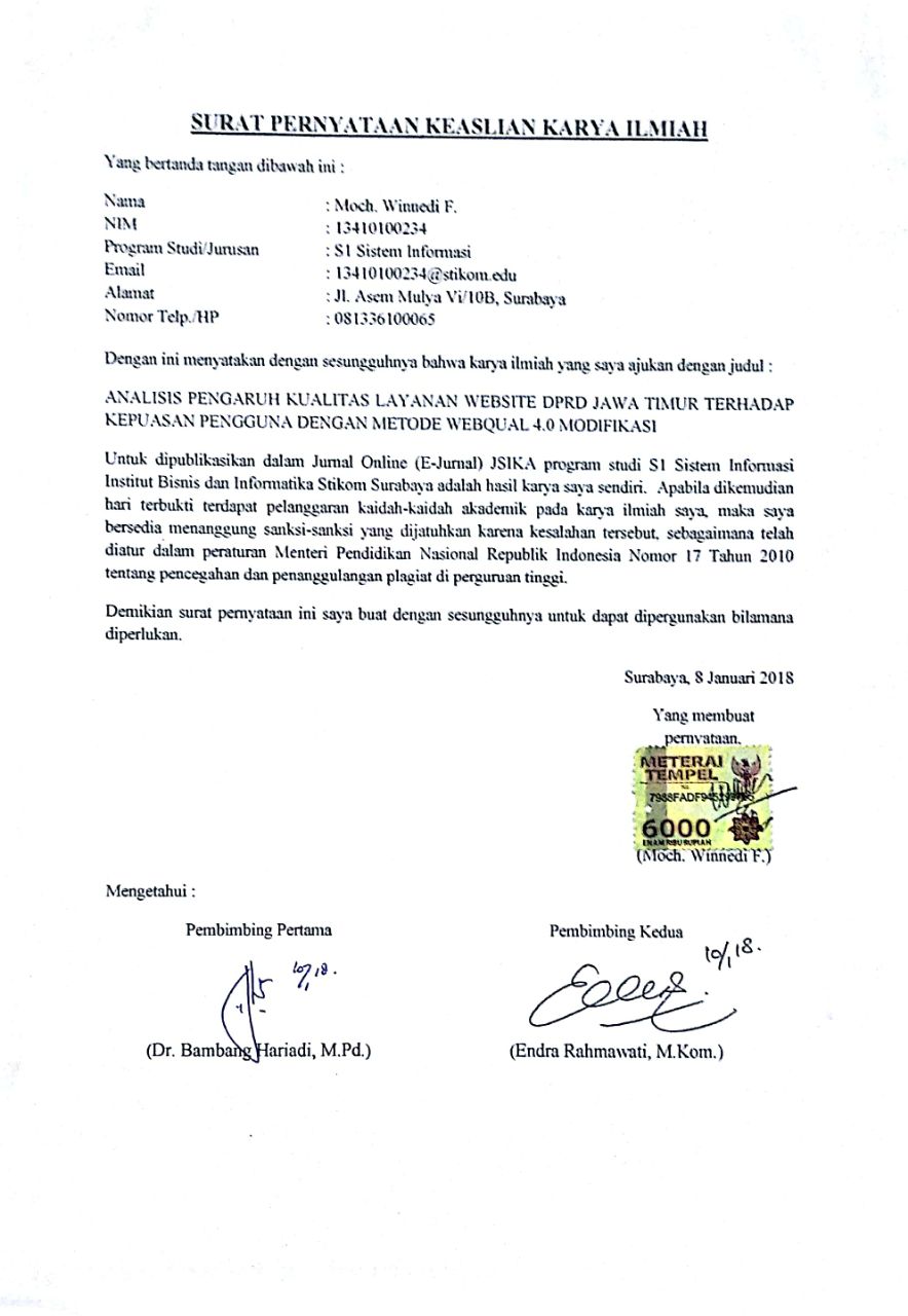 As the elements of regional goverments East Java DPRD  has an important role in order to improve the citizents welfare, therefore it is expected DPRD activities can be widely known by the people of Jawa Timur. The official website of East Java DPRD, named www.dprd.jatimprov.go.id provide information about council’s activity agenda,council organization structure, digital library, task and responsibilities and parliament news is expected to provide an overview about DPRD activities.According to the interview with the staff of East Java DPRD, there is a broken link in the current website. DPRD Jawa Timur currently planned to improve the current website, therefore DPRD requires feedback for the evalution. The solution give is by conducting a study about analysis of the influence of website quality towards user satisfaction. The analysis is based on Webqual 4.0, according to (Barnes & Vidgen, 2003) Webqual 4.0 is one of the methods of measuring website quality based on user perceptions. WebQual 4.0 consist of 3 categories namely Information Quality, Service Quality and Usability, but in this study added 4th category called User Interface Quality(Hasan, 2014). All of 4 variables will be used as a reference to construct the questionnaire, the results of this research Information Quality,Service Quality and User Interface Quality has a positive influence towards user satisfaction. Further recommendations are given in the form of Graphical User Interface (GUI) design to improve the website.Downloads