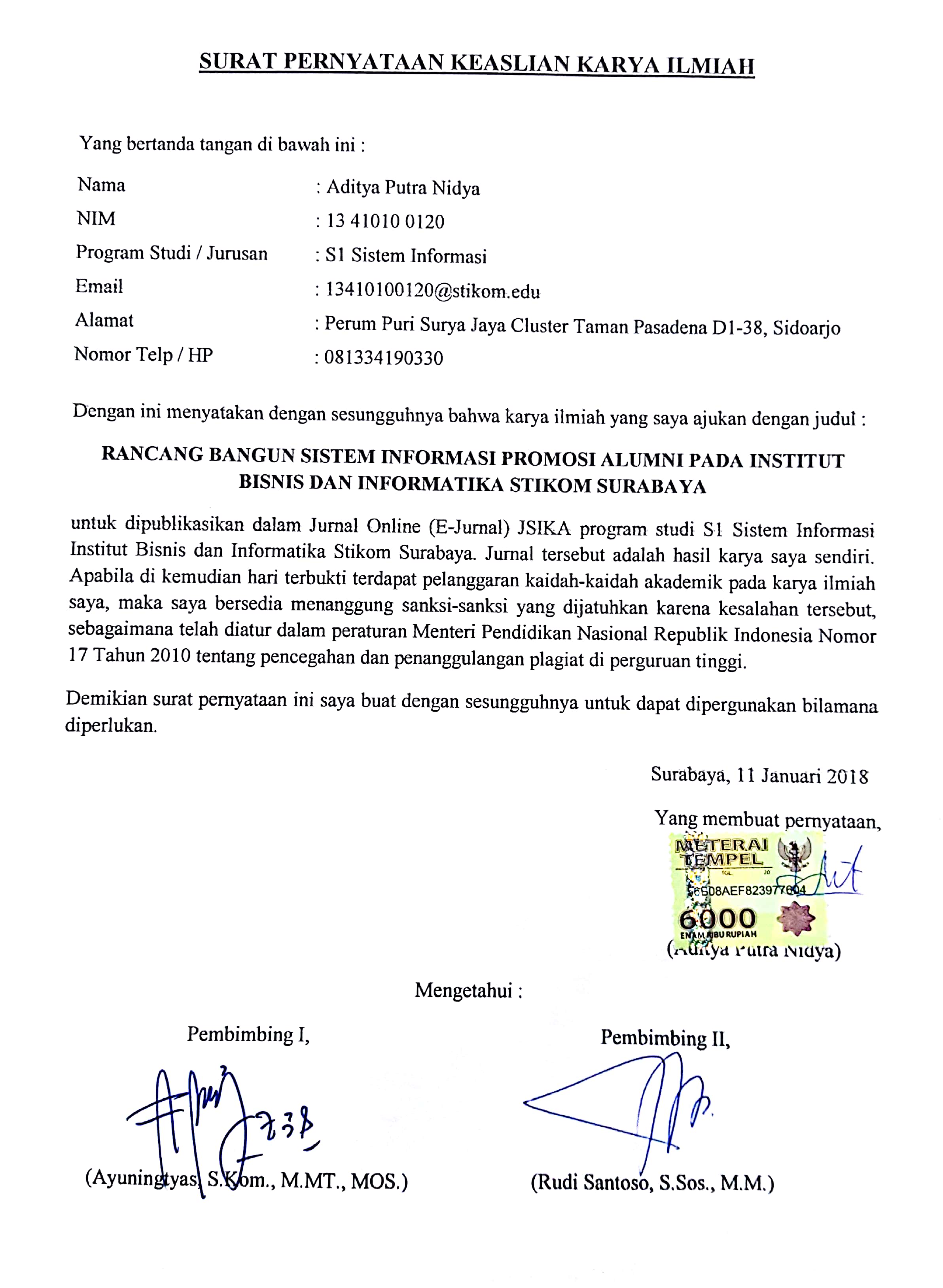 Stikom Career Center (SCC) is a technical implementation unit (UPT) which aims to help or become a mediator between companies / agencies / industry workers, especially those coming from Stikom Surabaya. On the SCC website, alumni still have to find their own job vacancies and the company has not been able to find alumni according to the criteria they need. This process has not been able to help alumni to promote themselves to the world of work. Therefore, the purpose of this research is to build a website-based information system to quick-select suitable candidates or by applicant synchronization in accordance with the needs of vacancies offered by employer. Based on the results of trials that have been conducted in conjunction with SCC Division and PPTI Division Stikom Surabaya then alumni promotional applications can help alumni to promote themselves and help companies who want to find candidates for workers in Stikom Surabaya. with attention to the look and functions used so as to help SCC to bridge alumni Stikom Surabaya in search of work.Downloads