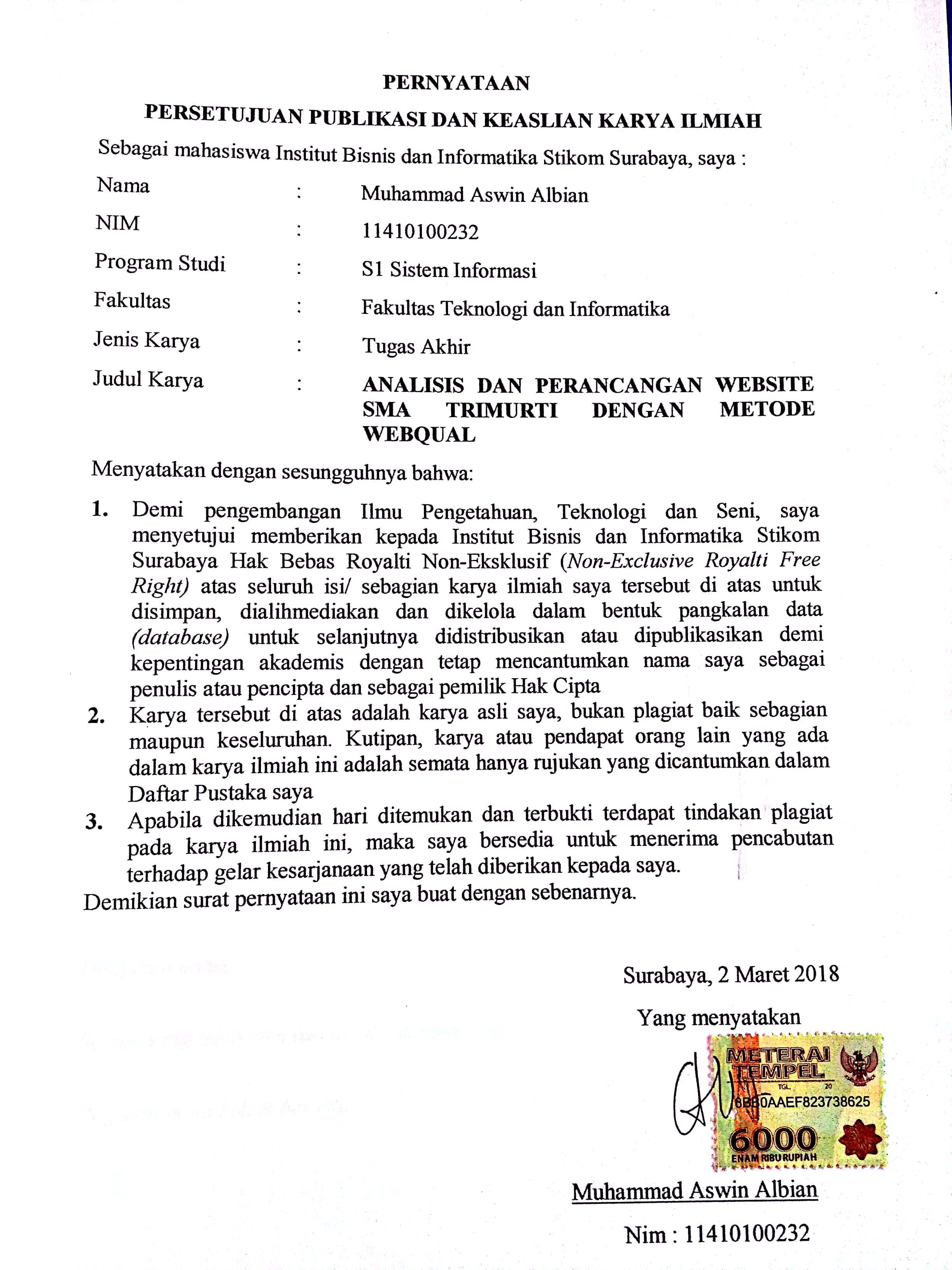 ANALISIS DAN PERANCANGAN WEBSITE SMA TRIMURTI MENGGUNAKAN METODE WEBQUAL