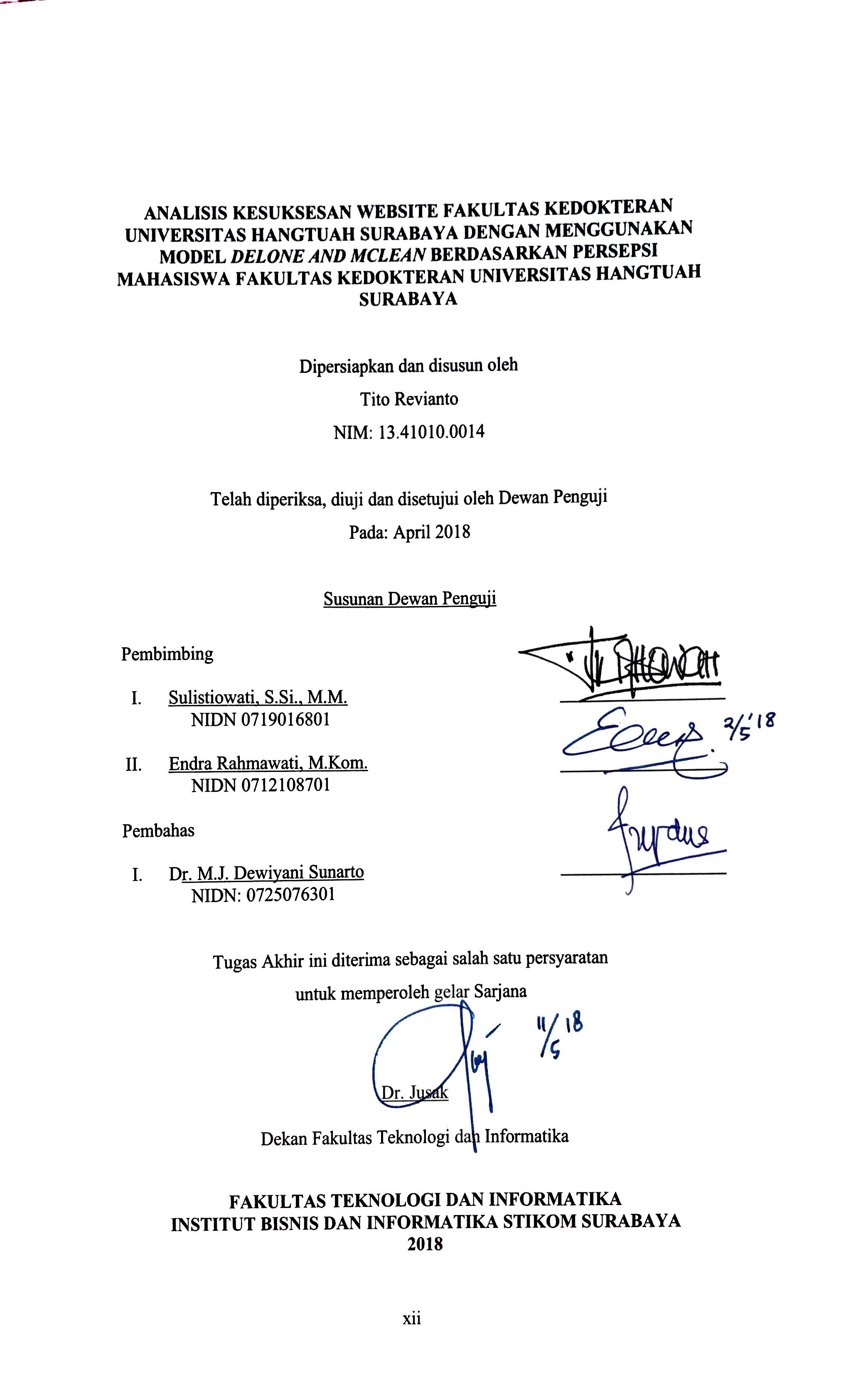 ANALISIS KESUKSESAN WEBSITE FAKULTAS KEDOKTERAN UNIVERSITAS HANGTUAH SURABAYA DENGAN MENGGUNAKAN MODEL DELONE DAN MCLEAN BERDASARKAN PERSEPSI MAHASISWA FAKULTAS KEDOKTERAN UNIVERSITAS HANGTUAH SURABAYA