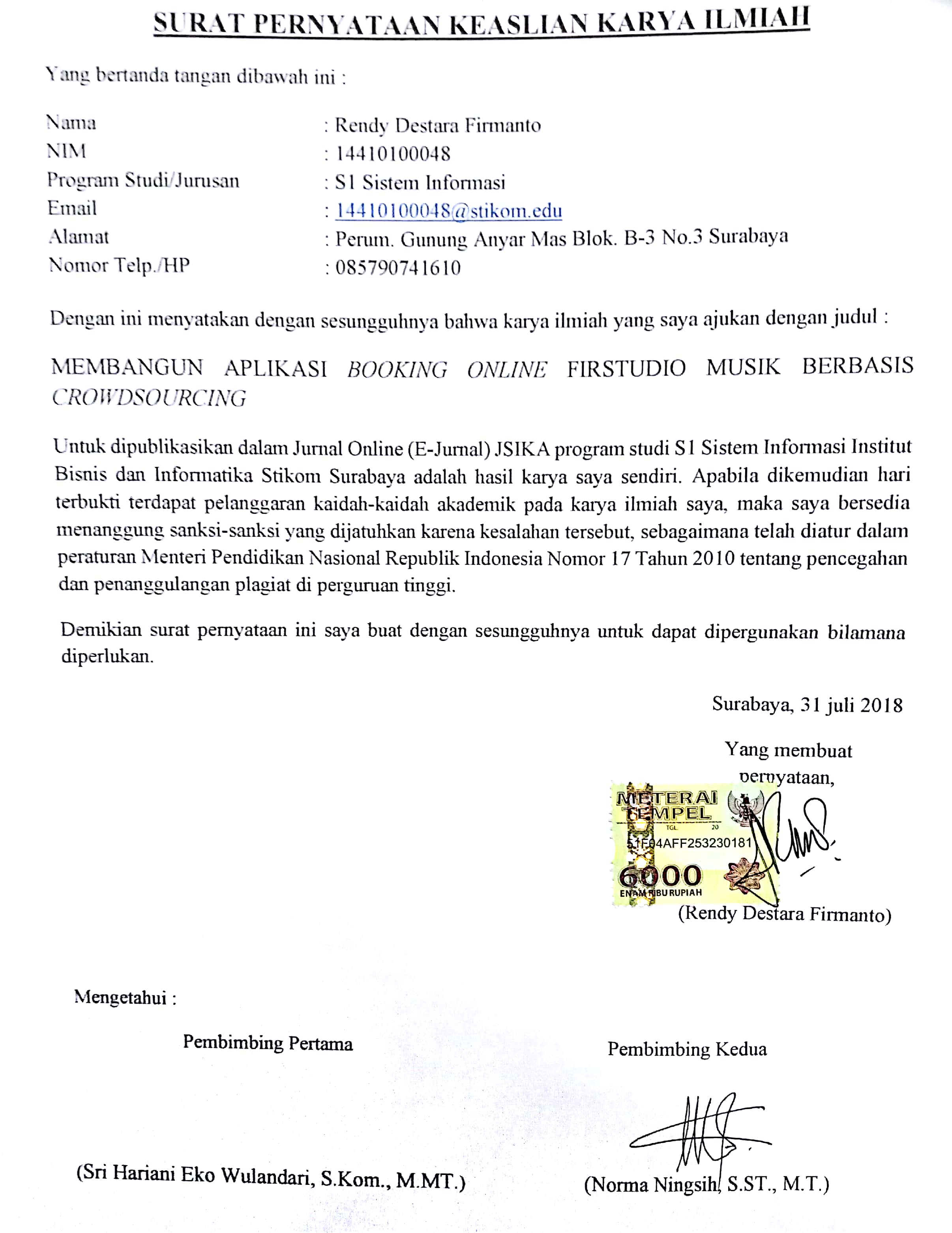 Currently many music studios are still using manual ordering in every process of their business, may be practically almost all the studios that exist in Indonesia are still using the manual way, therefore many people are still had difficult way in ordering because the schedule always crashes with the other studio users, Moreover they have to consider the mileage and then they survey the place, studio situations, rooms, tools and prices. Another problem is certainly felt by the studio owner who sometimes confused how to promote their music studio to be known by many people and is not less competitive with other music studios. You can see from the problems above, then we need an application that can bridge between studio owners and users of music studios. So the solution offered is to design an online booking application based Firstudio music crowdsourcing. With the application of Firstudio certainly can help the users of music studios in terms of booking music studio online quickly and accurately. Not only studio users, but studio owners will also benefit, they can promote their music studio on this website, moreover the absence of fees for their studio advertisements.Downloads